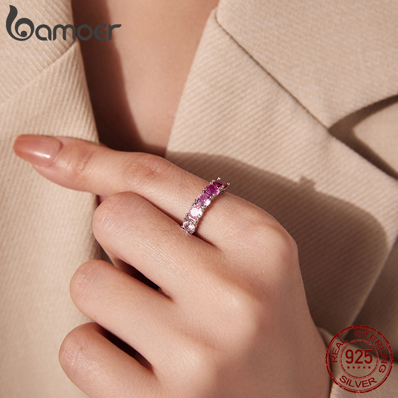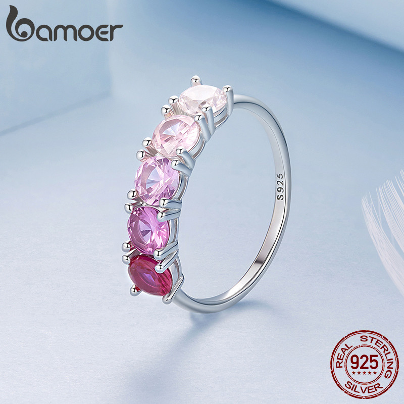 Anel De Prata Esterlina 925 Bamoer Gradiente Rosa Joias Da Moda Presentes Para Mulheres