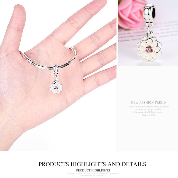 Bamoer Cor Prata Branco BLOOMING Dália Pingente Charme Fit Pulseiras Colares Mulheres Beads & Jewelry Making PA5329