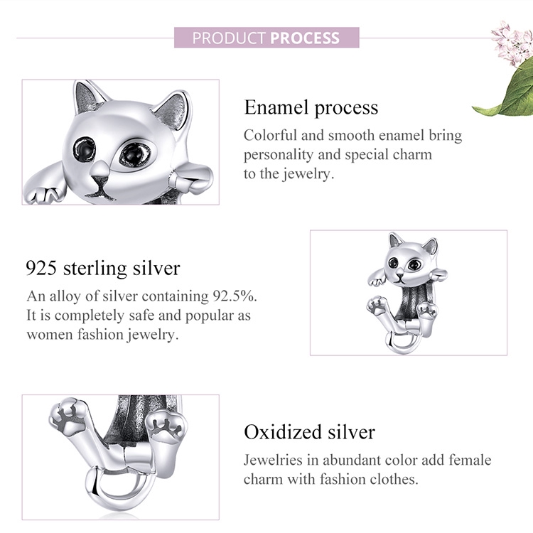 Bamoer Pingente De Prata 925 De Gato Bonito/Faça Você Mesmo