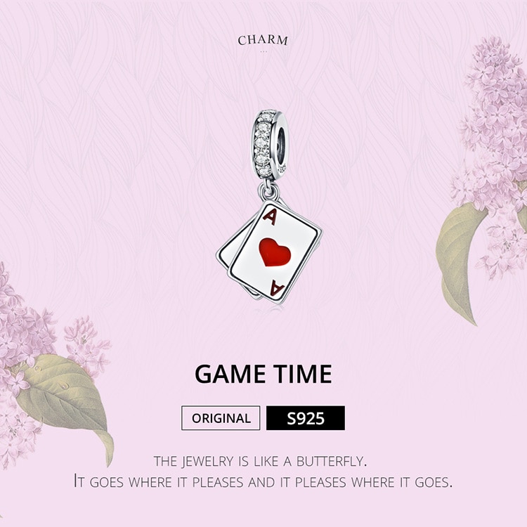 Bamoer Poker Ace Charme Pingente Duplo Para 925 Prata Charm Bracelet Jóias Diy Scc1172