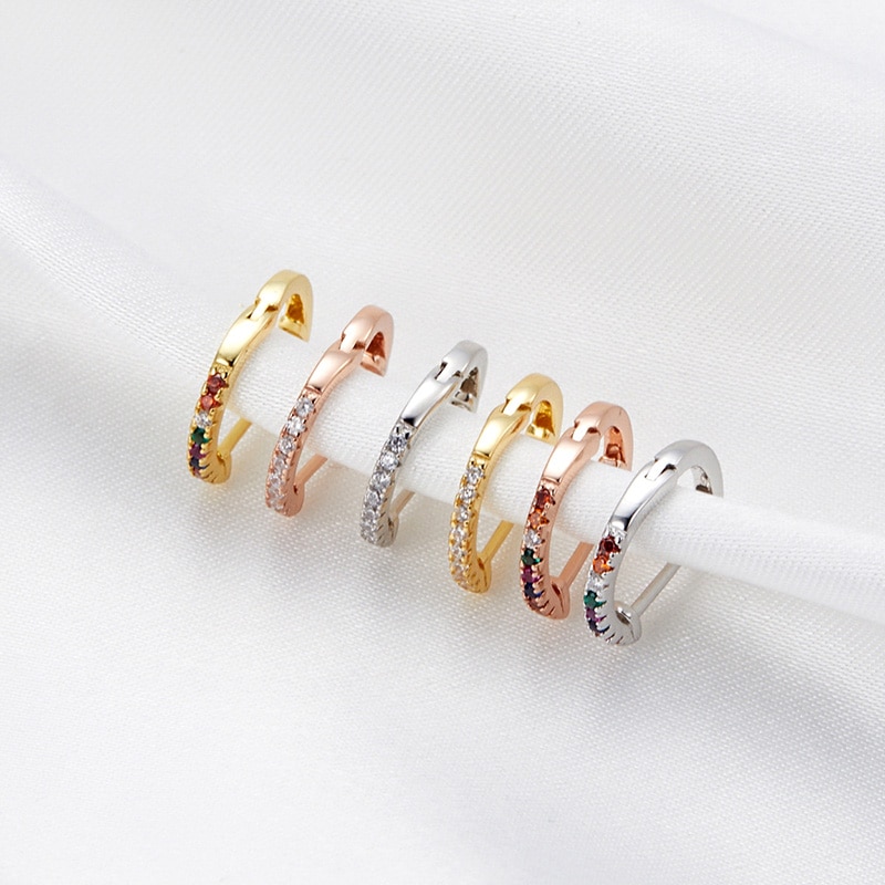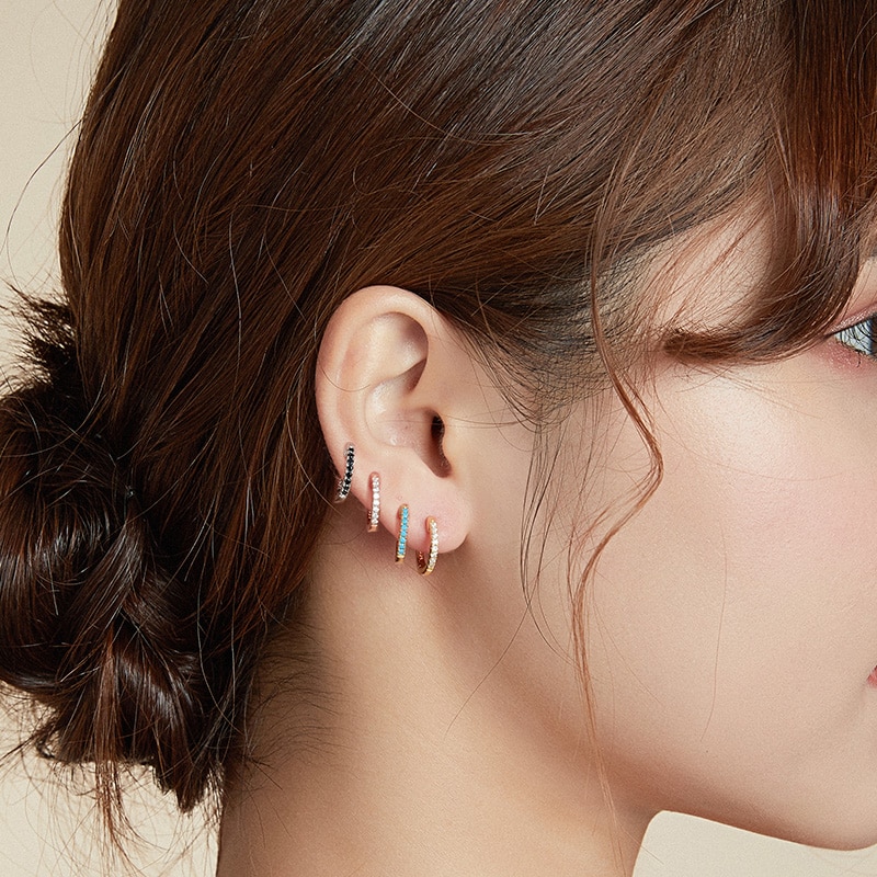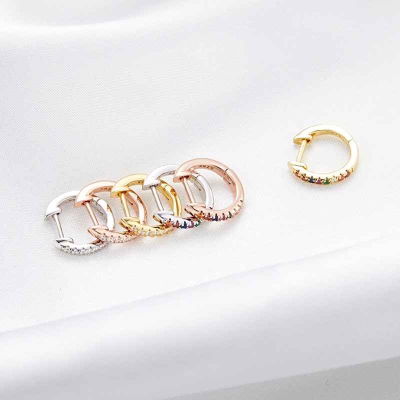 Bamoer 925 Prata 10 Huggies Hoop Brincos Para As Mulheres Com Zircônia Cúbico Cores Da Cor Do Ouro Jóias Declaração Sce498