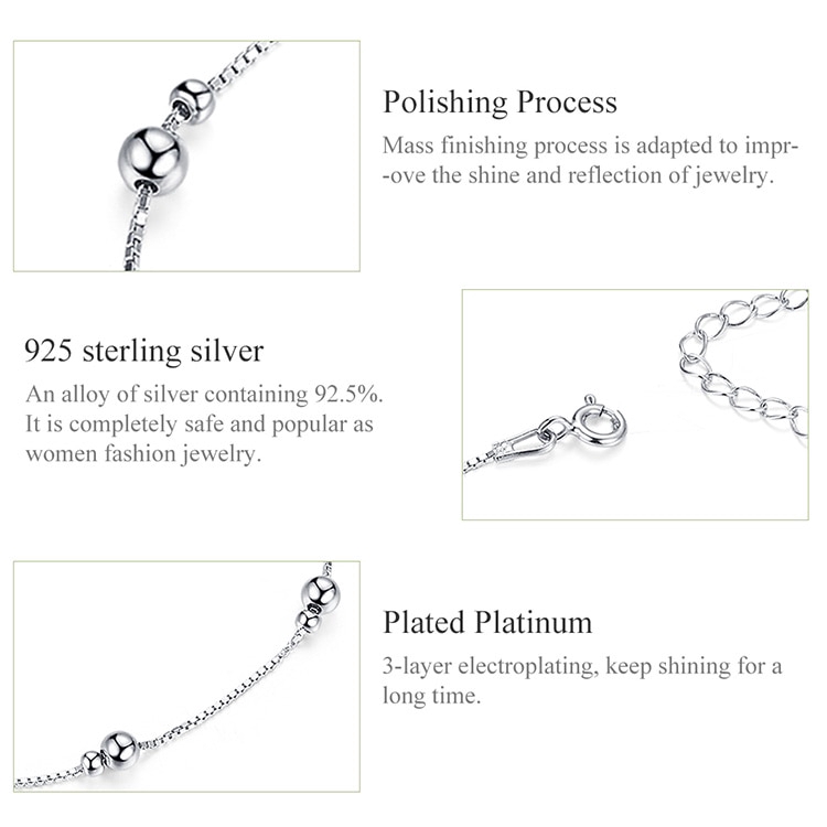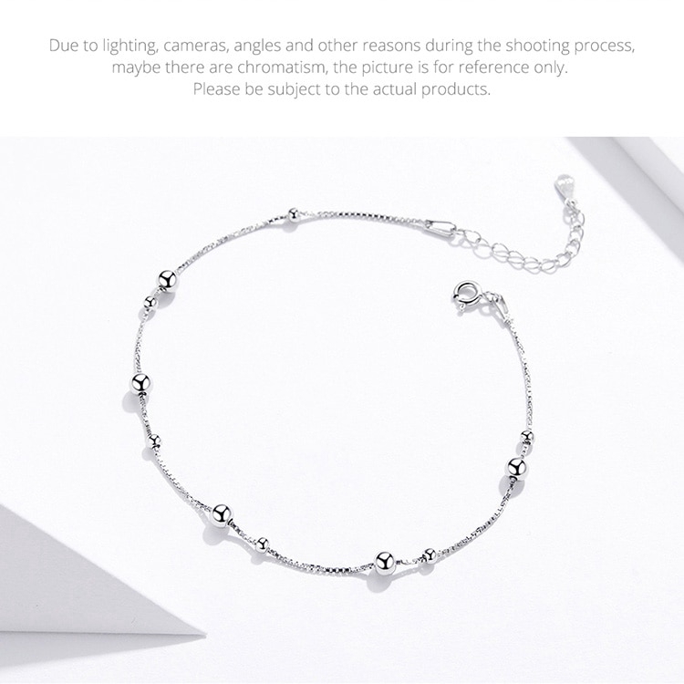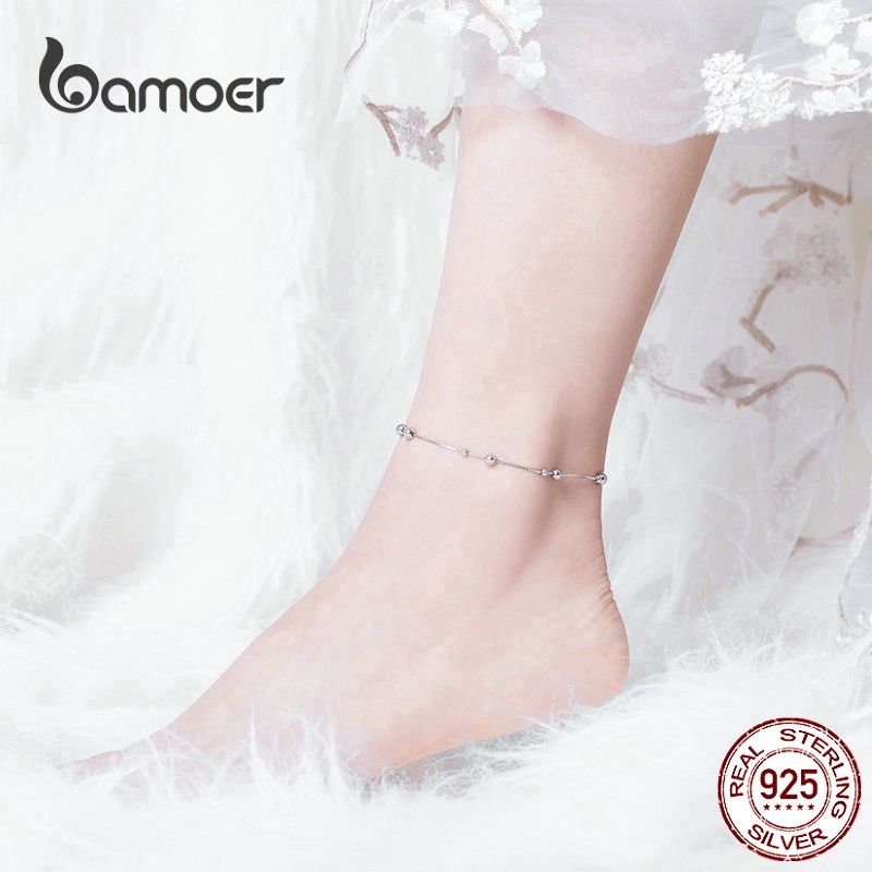 Bamoer Minimalista Rodada Beads Tornozeleira Pulseira De Prata Esterlina Chian Para Perna Feminina Pé Cadeia De Jóias Para As Mulheres Perna Sct005