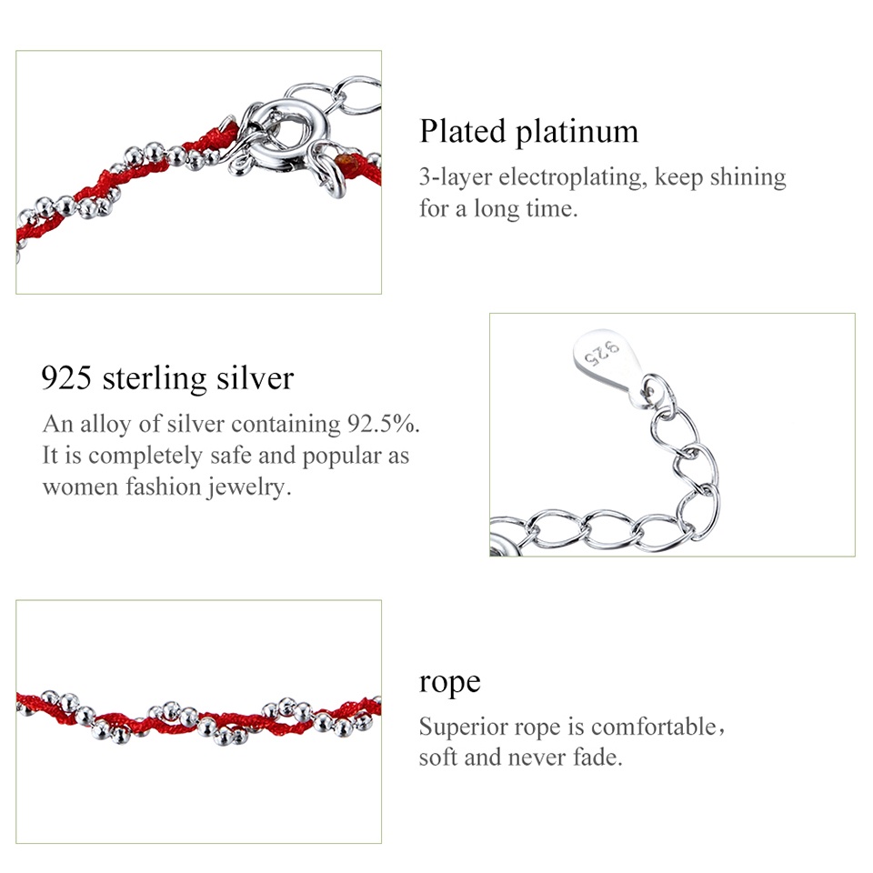 BAMOER Black&Red String And Chain Fashion Bracelet For Woman Authentic 925 Silver
