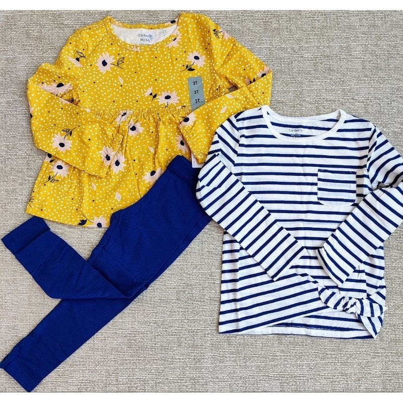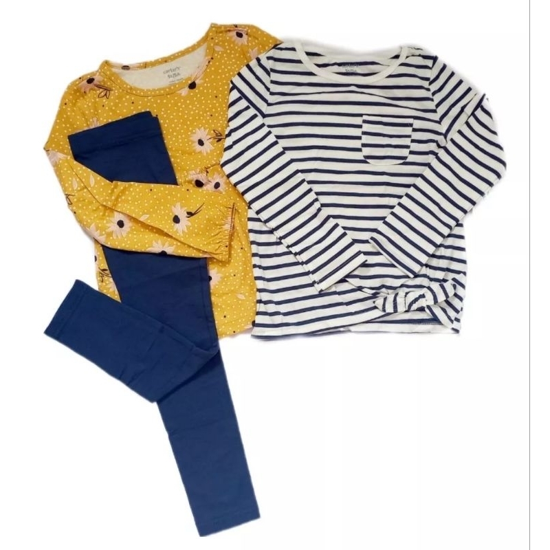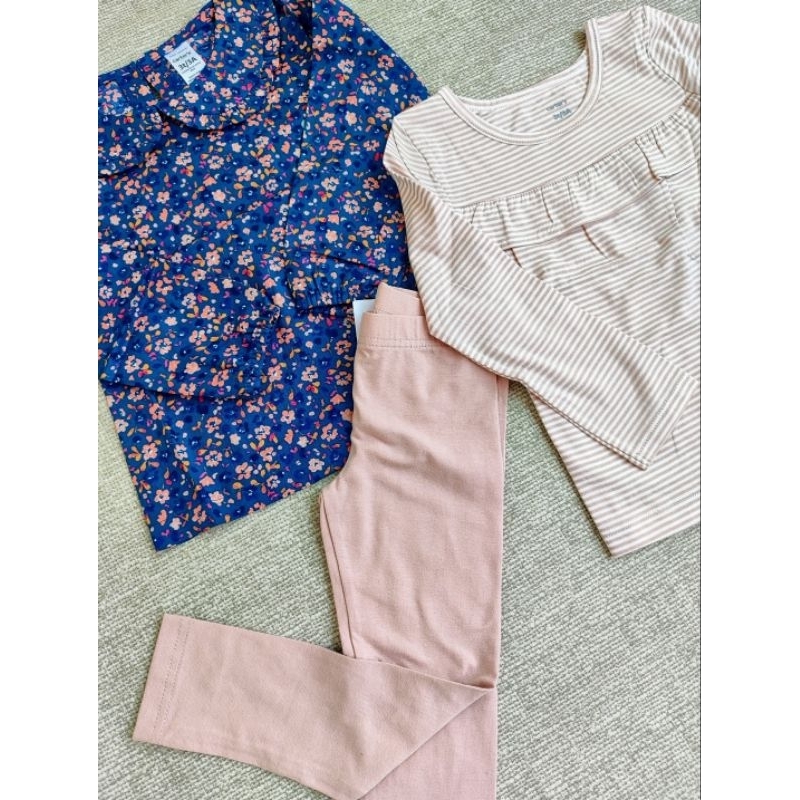 Conjunto infantil importado original 3 peças legging e duas blusas manga longa menina rose 4t