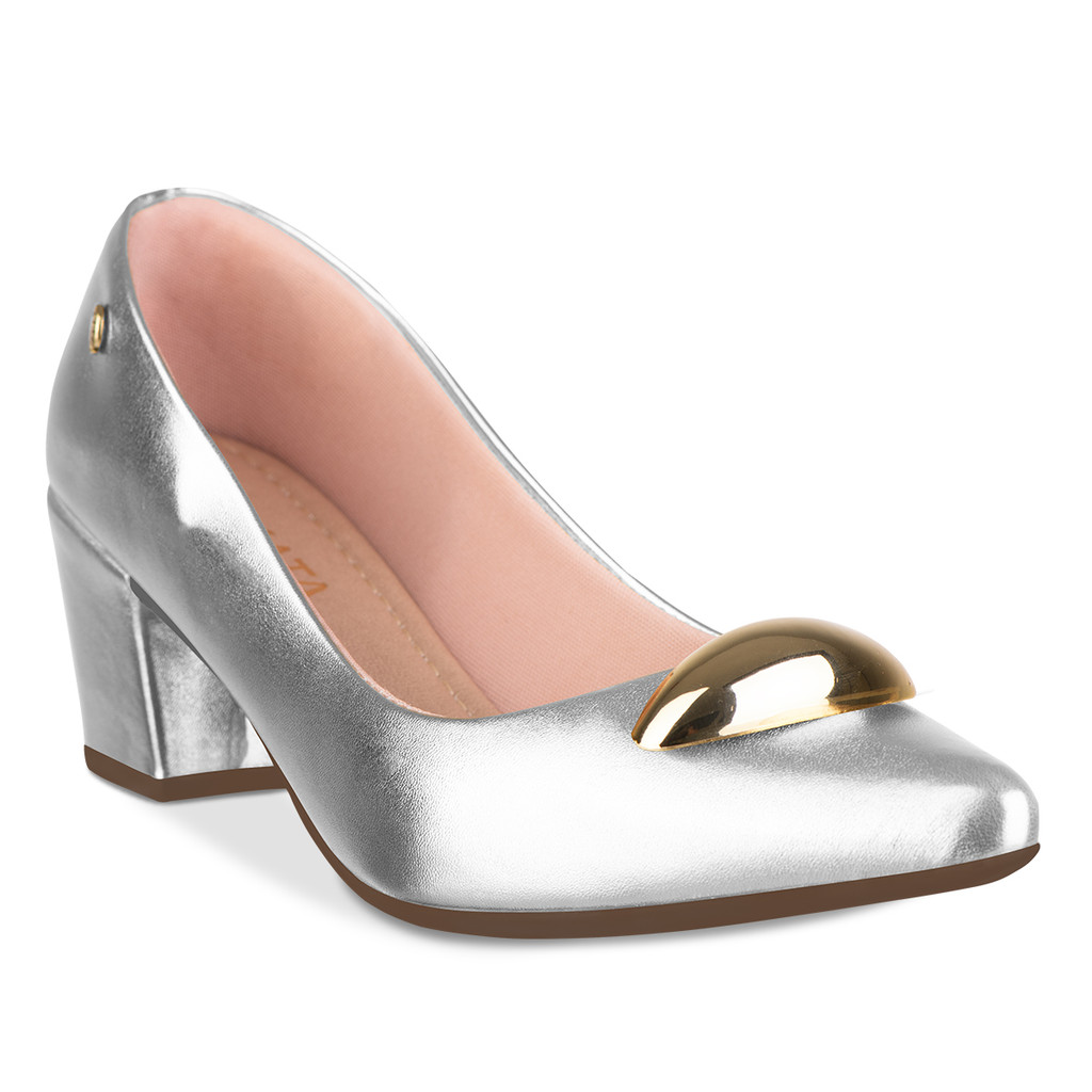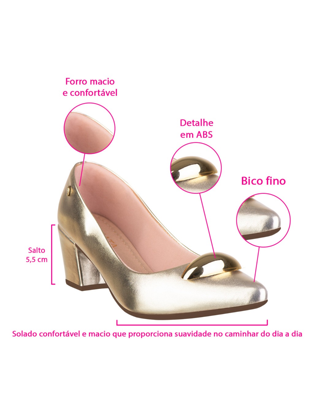 Scarpin Feminino Sapato Metalizado Salto Baixo Bloco Detalhe Metal Confortavel Moda Promoção