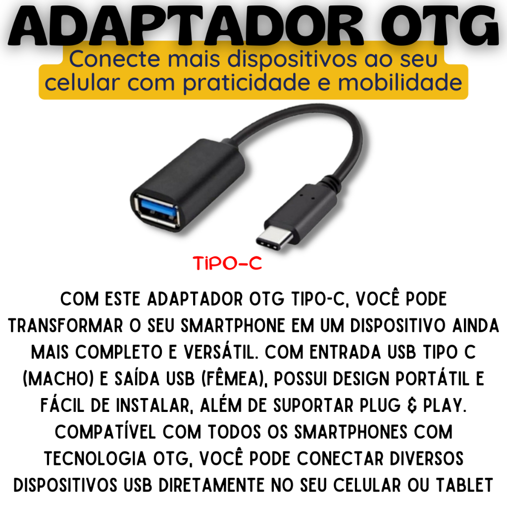 Kit Hub Usb 2.0 Com Interruptor + Cabo Otg Tipo c Mobilador Para Celular
