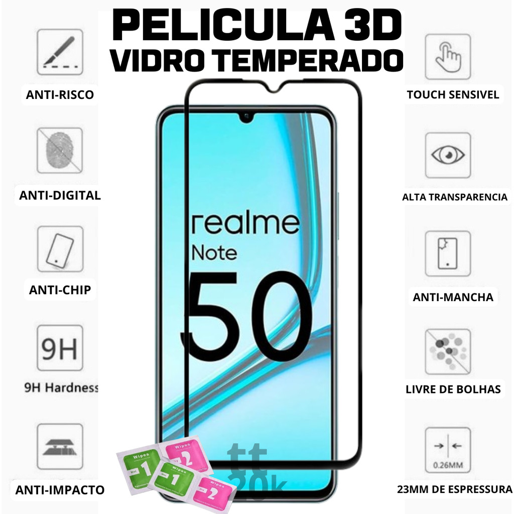 Kit 3 Película Frontal REALME NOTE 50 Vidro Temperado Full Glass Premium + Kit Aplicação