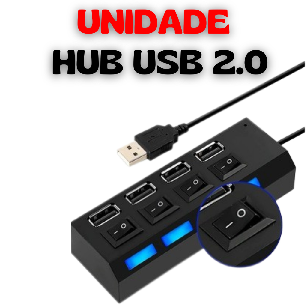 Hub Usb 2.0 Ultra Rápido Botão Liga e Desliga + Cabo Adaptador Otg Tipo c Micro Usb V8 Mobilador Celular
