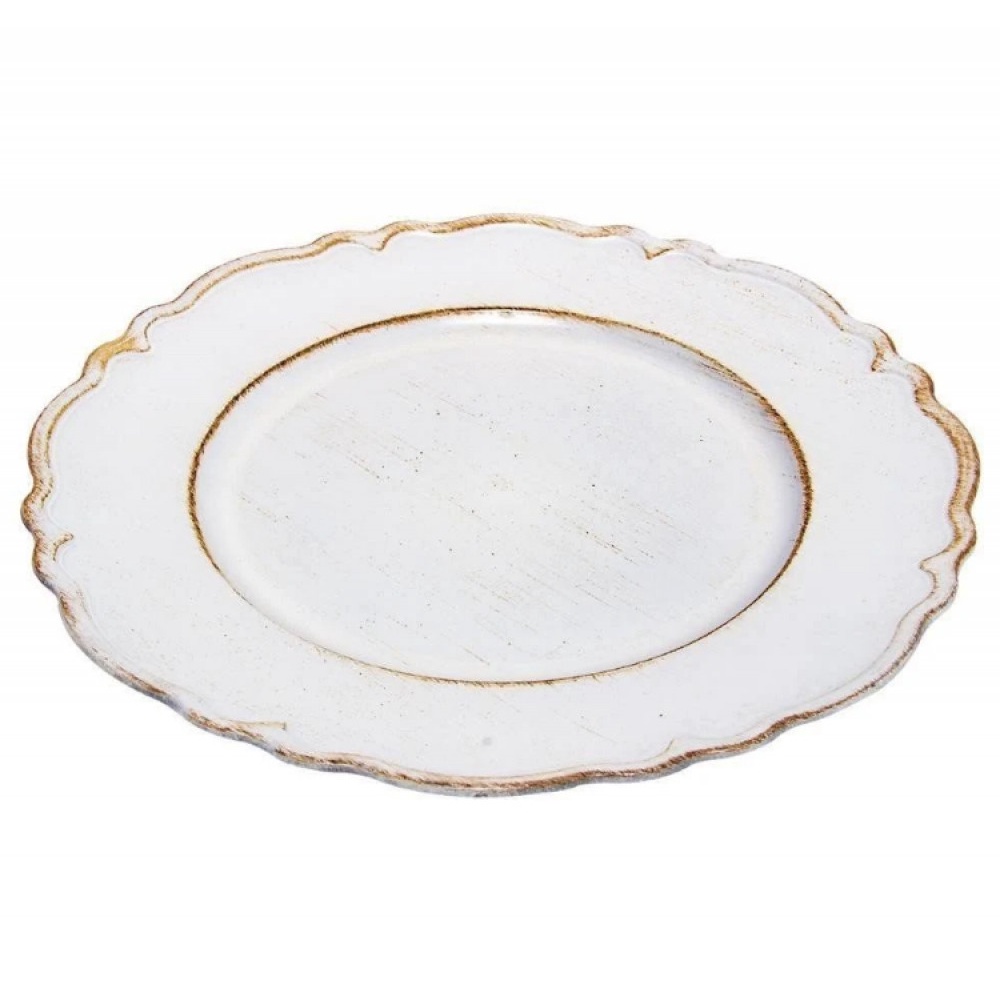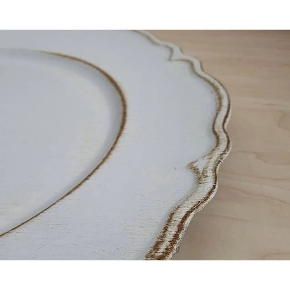 Sousplat de Mesa Patinado Branco Moon 33 cm - Lyor