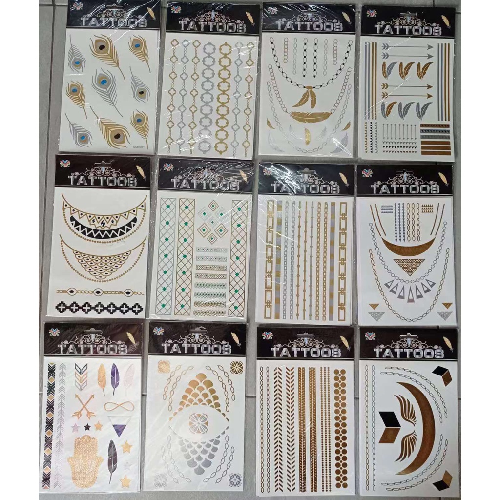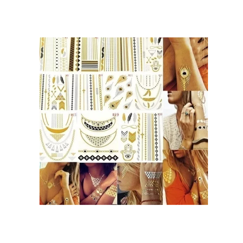 Kit C/10 Cartelas De Tatuagem Metalizadas Temporárias Adesivas Flash Tatto