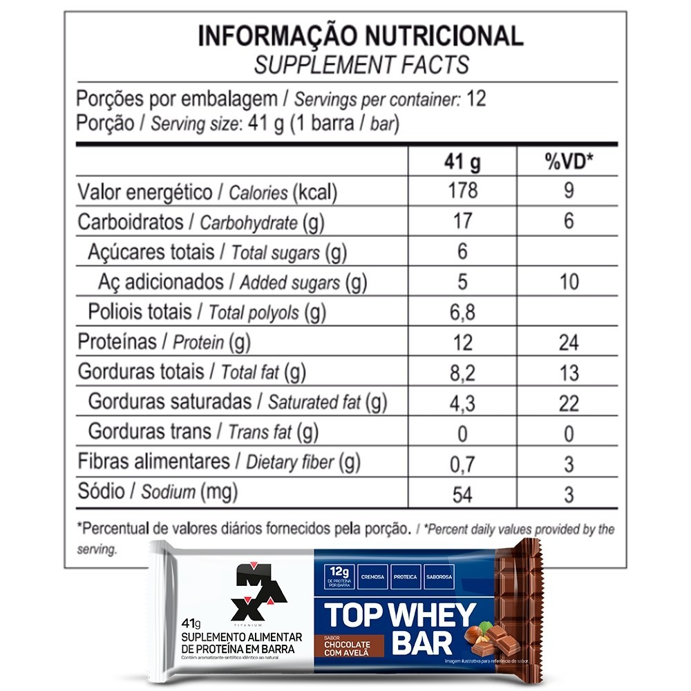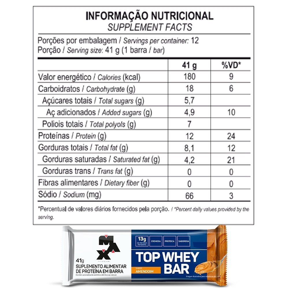Max Titanium Top Whey Bar Display 12 Barras de 41g Cada - Barrinha de Proteína
