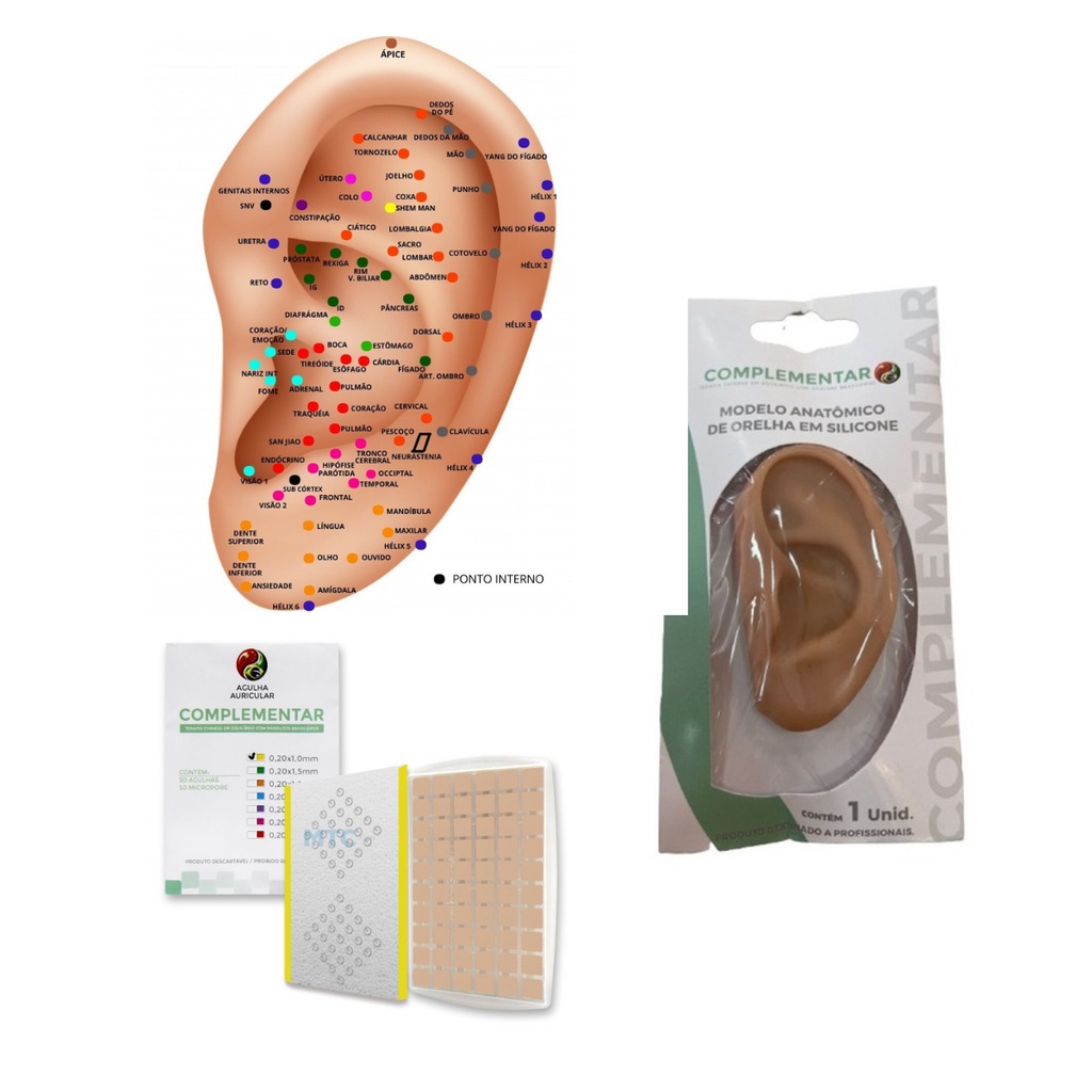 Kit auriculoterapia orelha silicone agulha auricular mapa auricular