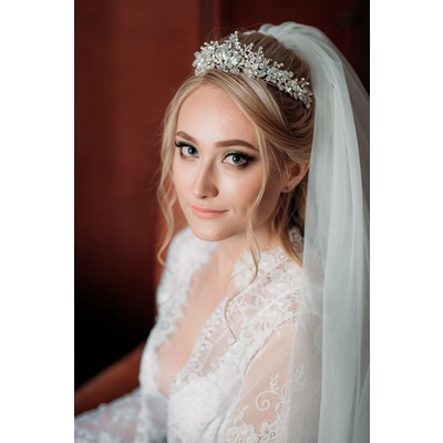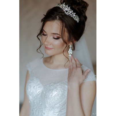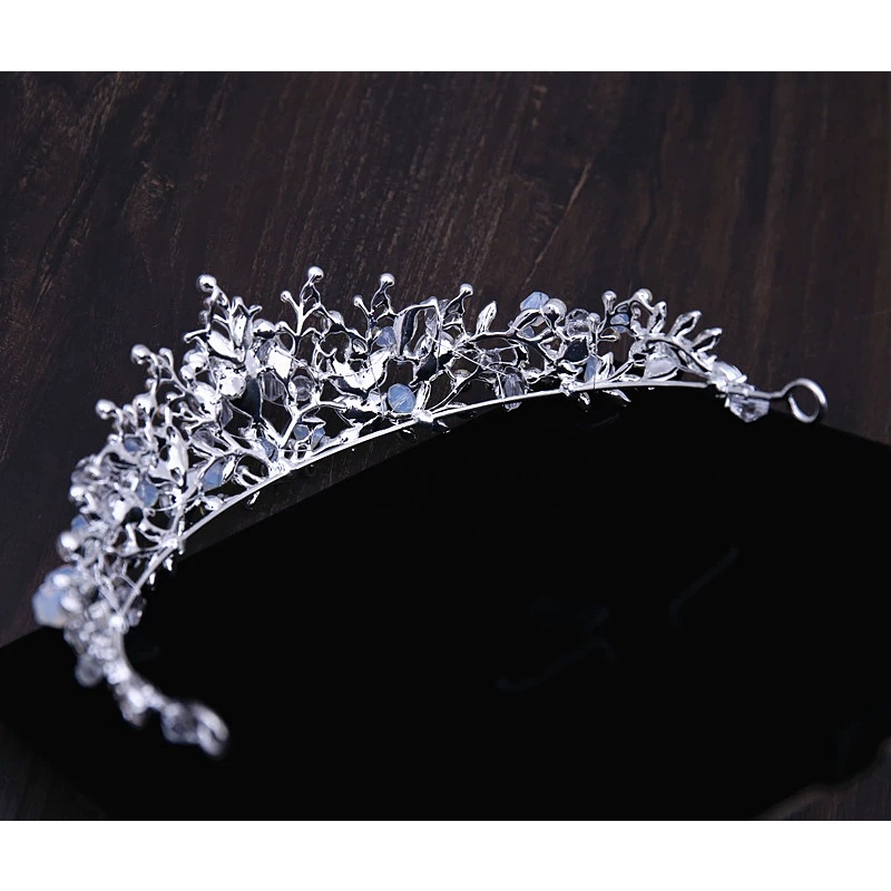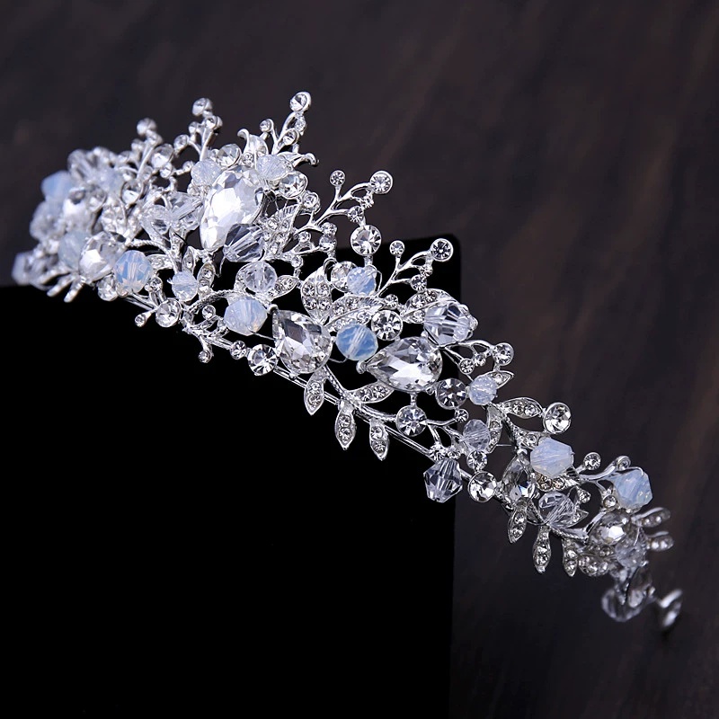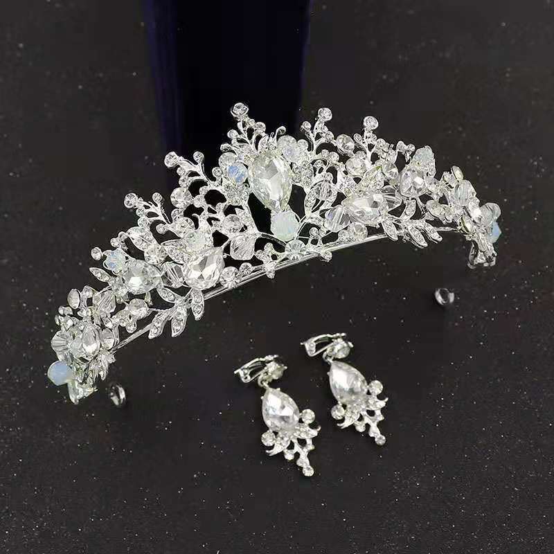 KIT Coroa Tiara Porta Coque + Brincos Prata Noiva Rainha Cristais Azul Cabelo Penteado Casamento Festa de 15 Anos