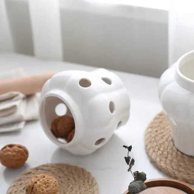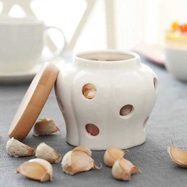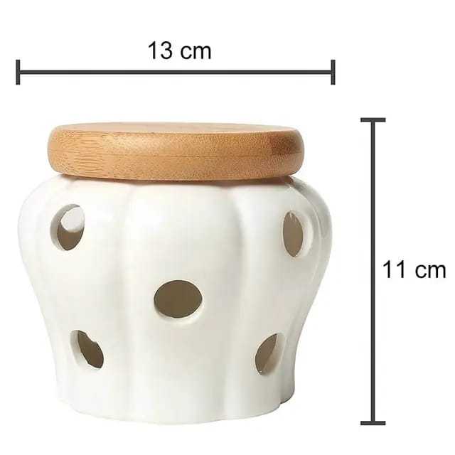Porta Alho Porcelana Ceramica Branca Com Tampa Bambu Porta Condimentos Decoração Cozinha