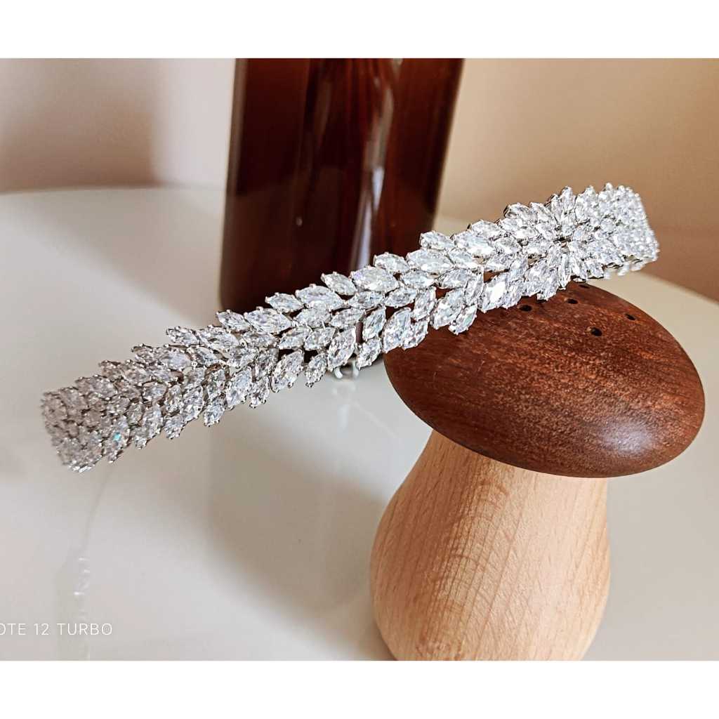 Coroa Tiara Porta Coque Luxo Prata Feito de Zircônia para Noiva Casamento Debutante Festa de 15 Anos