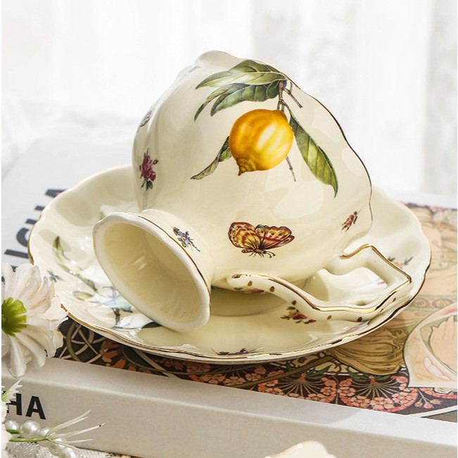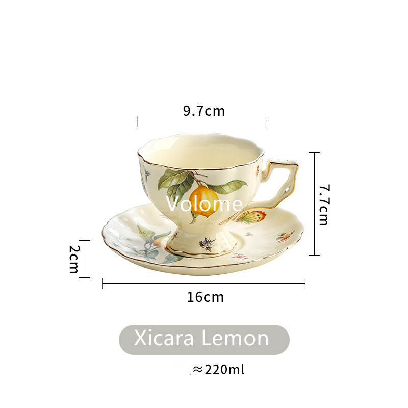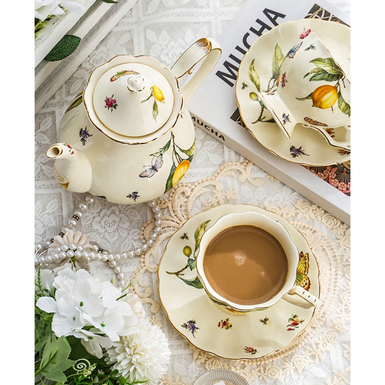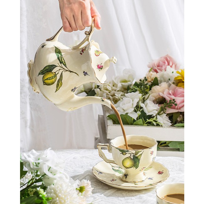 Bule de Cerâmica para Chá Cafe Xicara Porcelana Floral Lemon Estilho Inglês Vintage Elegante Mesa Posta Decor
