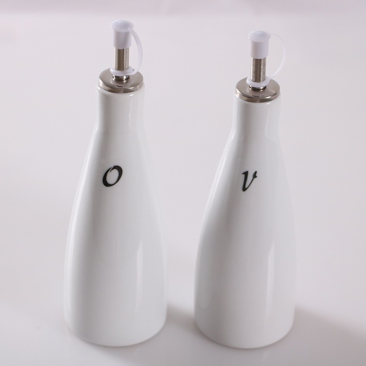 Kit Conjunto Jogo Porta Óleo Vinagre Galheteiro De Porcelana Cerâmica Branco Com Tampa Decor Cozinha Moderna