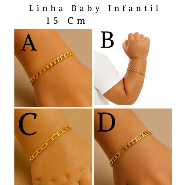 Pulseira Infantil Juvenil Bebê Menino Banhada a Ouro 18k com Embalagem para Presente e Certificado de Garantia