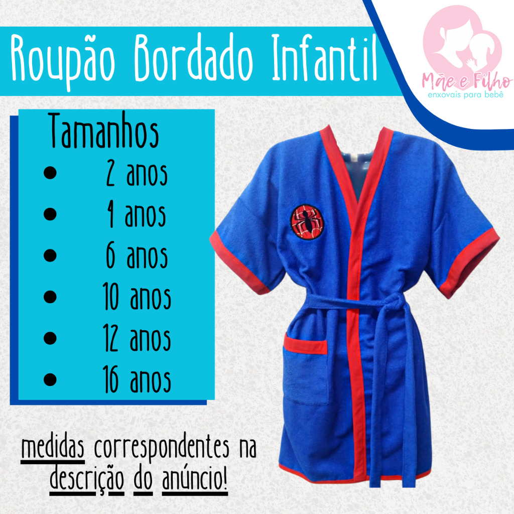Roupão Infantil Meninos Adolescente Personagens Tecido Felpudo e Atoalhado Bordado 100% Poliéster