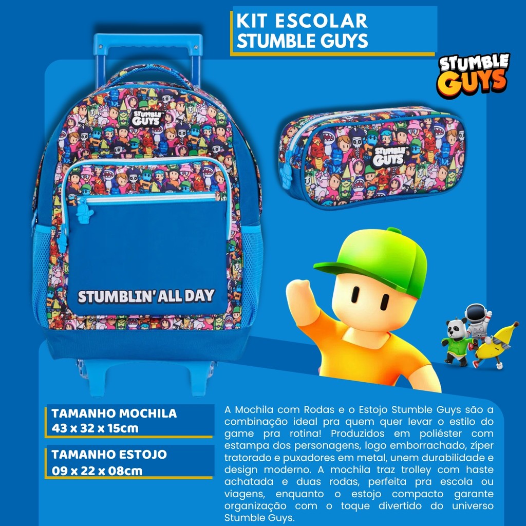 Kit Mochila Rodinhas E Estojo Stumble Guys Infantil Escolar