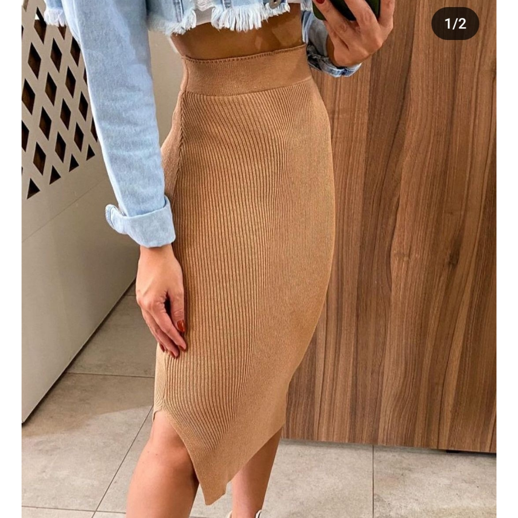 Saia Midi de Tricô Modal Tendência Verão Fenda Lateral Blogueira Moda Verão *SAIA MIDI MODAL LISA FENDA