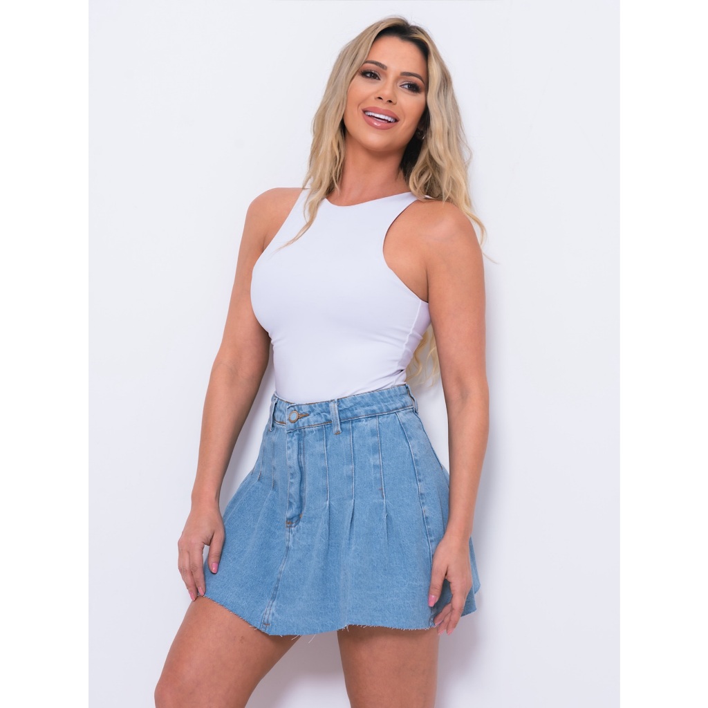 saia jeans pinçada, moda bloguerinha, Promoção envio aleatório cor e modelo