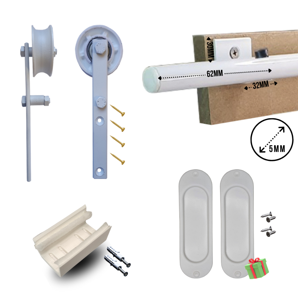 Kit para Porta Celeiro Tubular Rústico até 120cm Branco - 2,40m