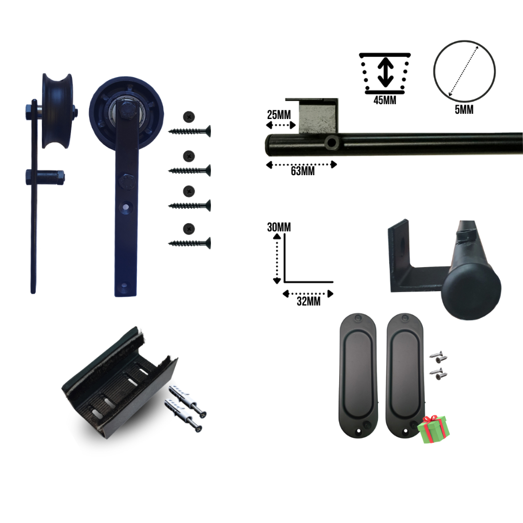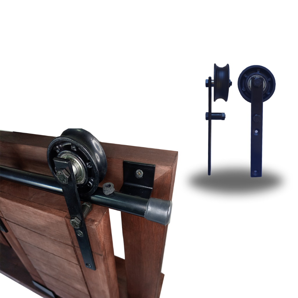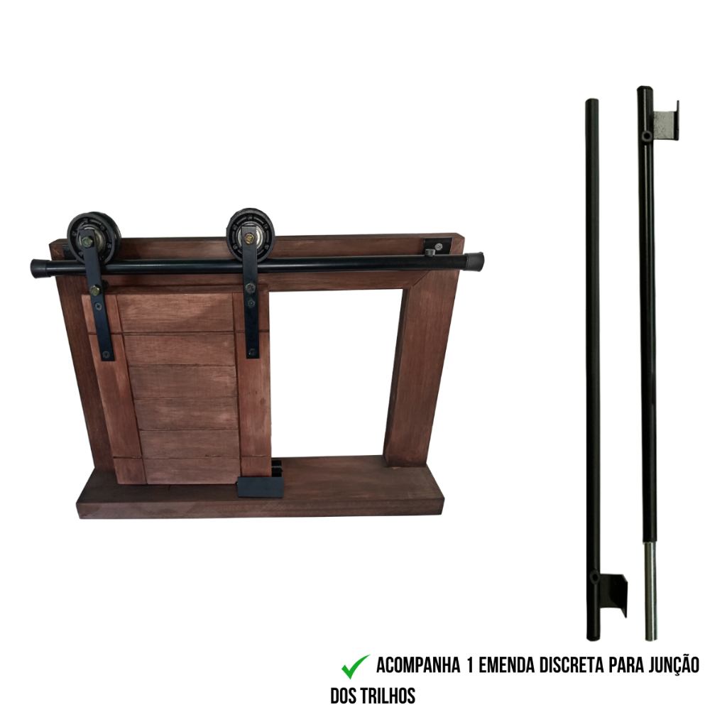 Kit para Porta Celeiro Rústico até 120cm Trilho Tubular Preto - 2,40m