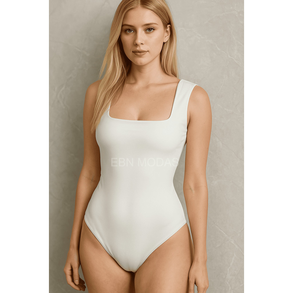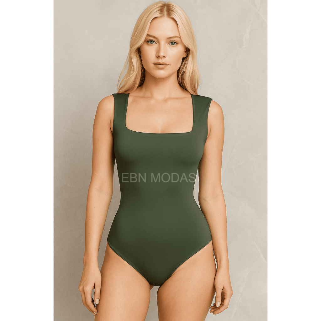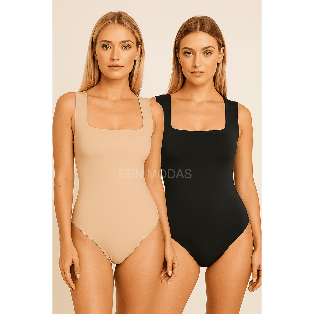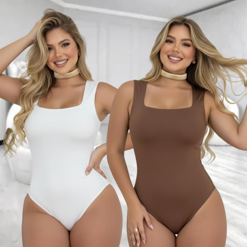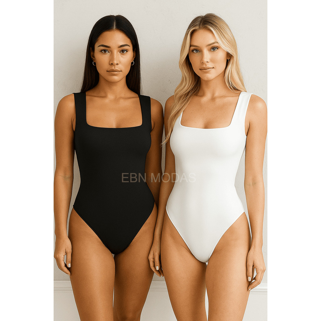 Body Feminino Regata Alça Grossas Collant Decote Quadrado Básico Casual Dia Noite Bori Suplex