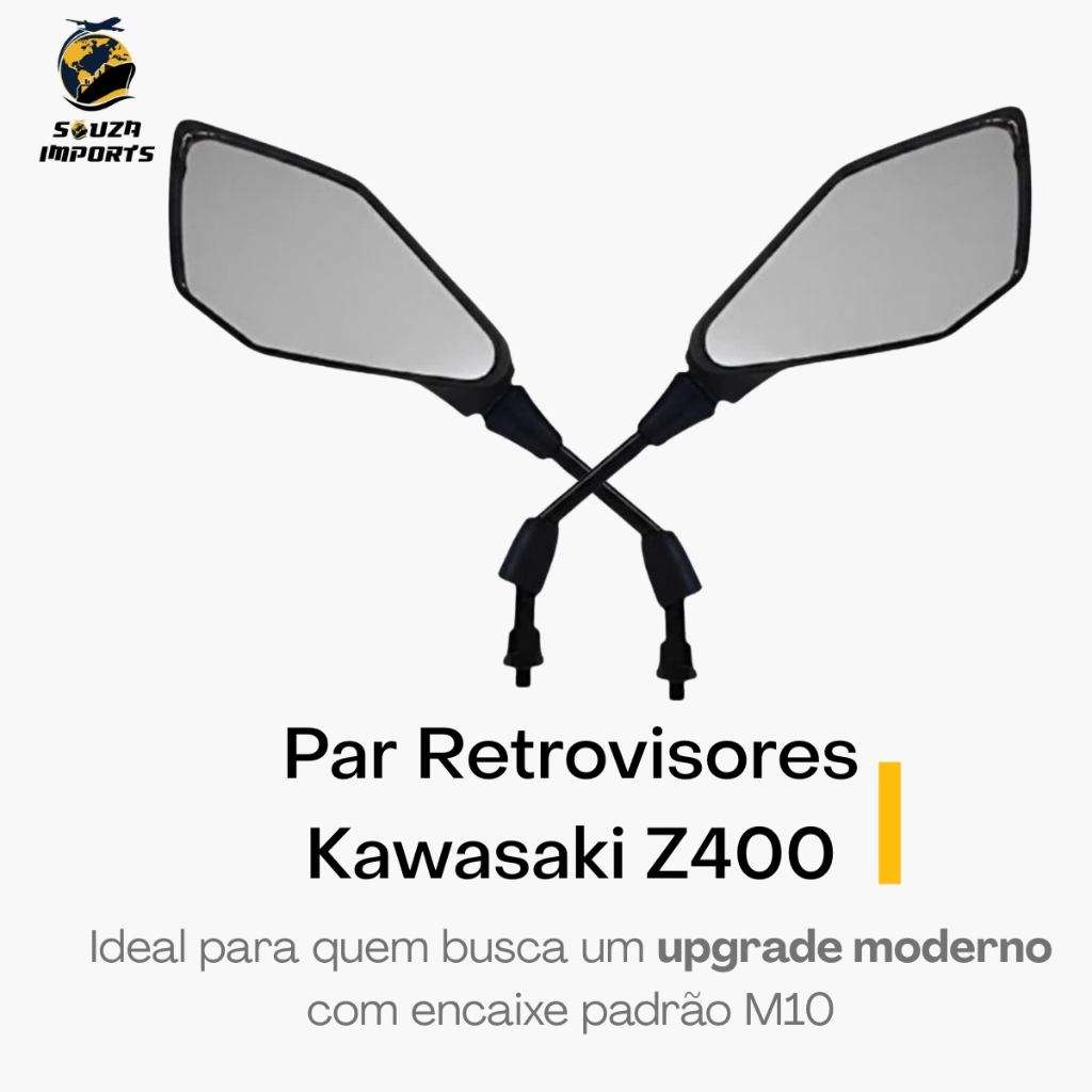Par Retrovisor Moto Kawasaki Z400 Rosca M10 Honda Suzuki Dafra