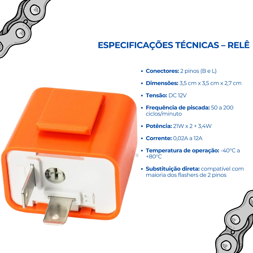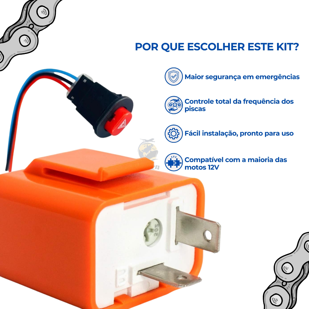 Kit Botão Pisca Alerta + Relê Pisca 2 Pinos 12V Universal Regulável para Moto