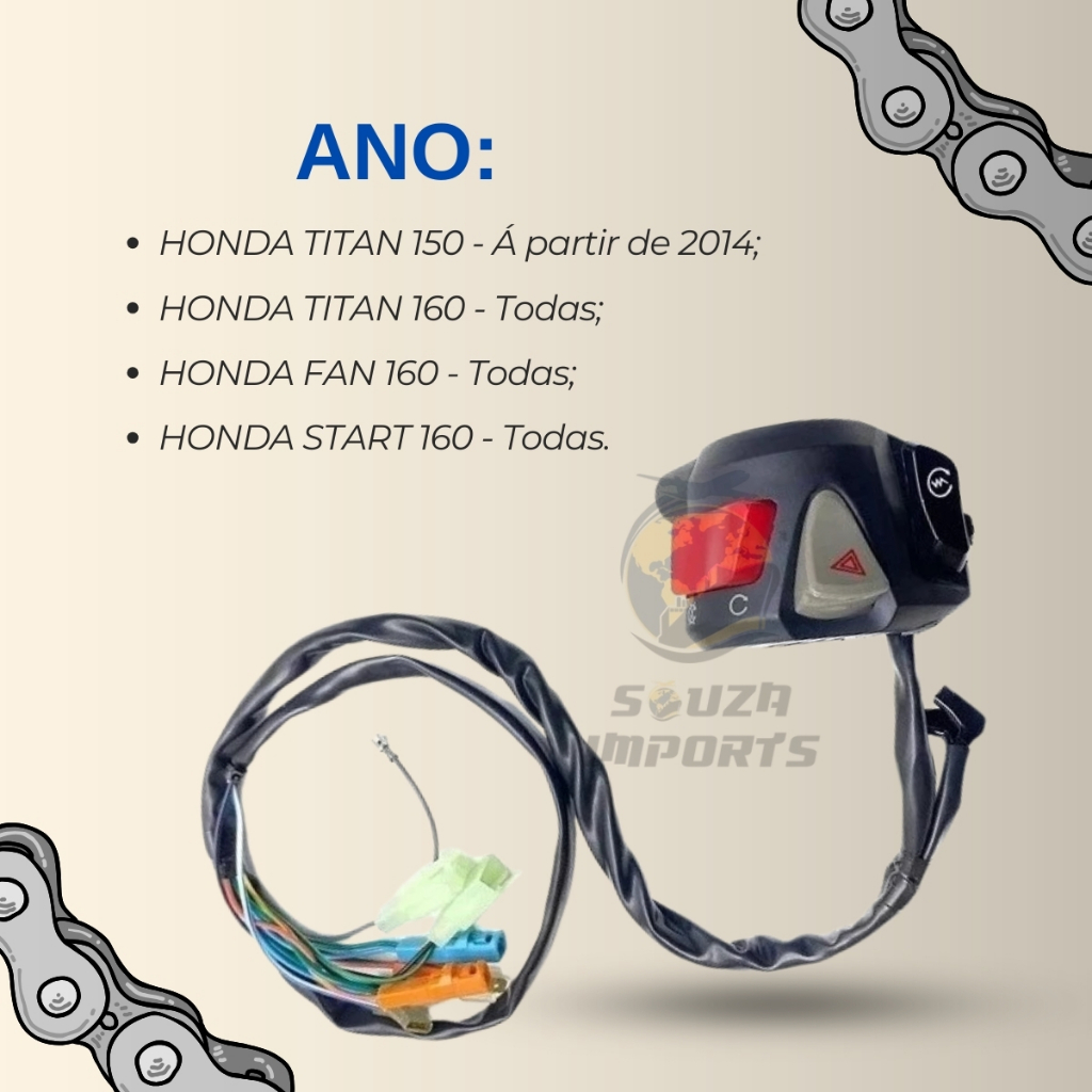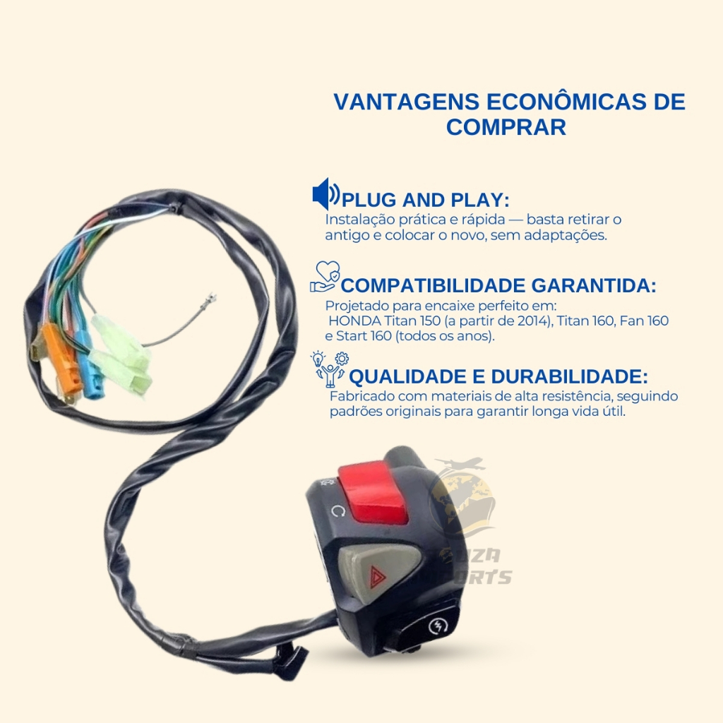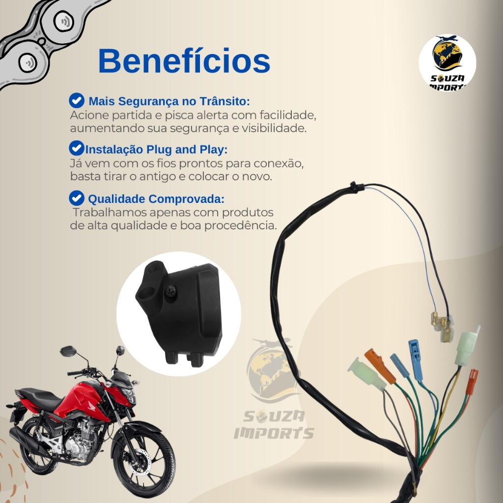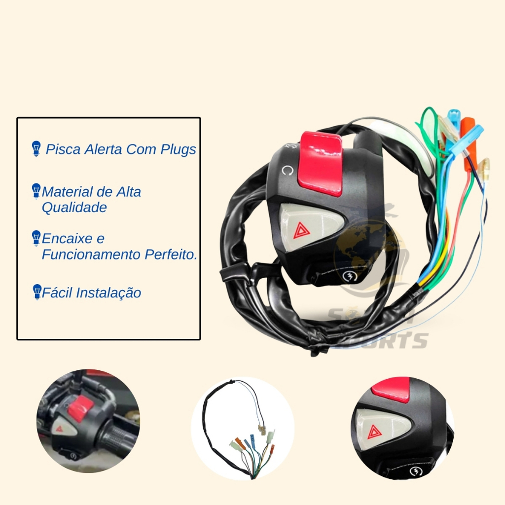 Punho Partida Pisca Alerta Cb500 Titan 160 Fan 150 Start 160 Com Plugs Durabilidade e Resistência