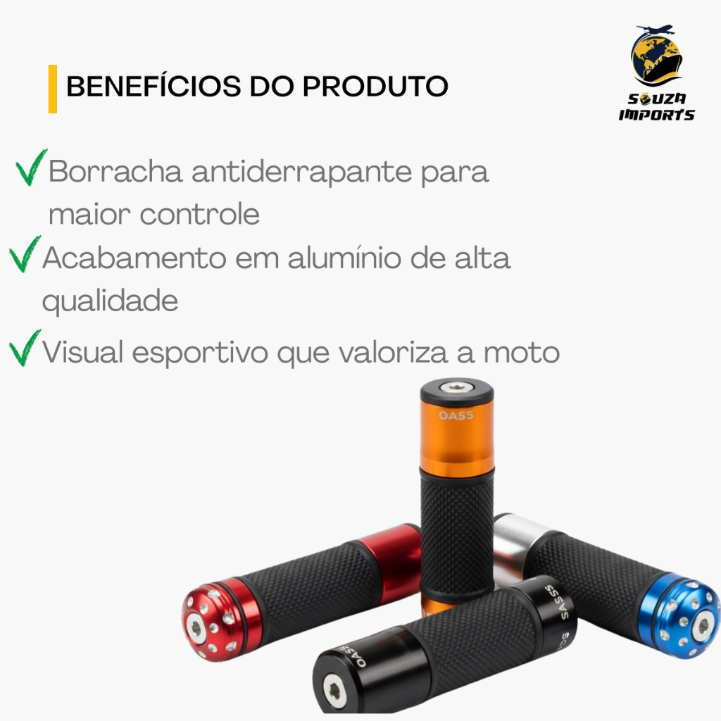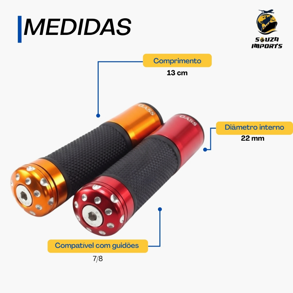 Manopla Moto Esportiva Alumínio Fan Cg Cb Ybr Fazer Yes