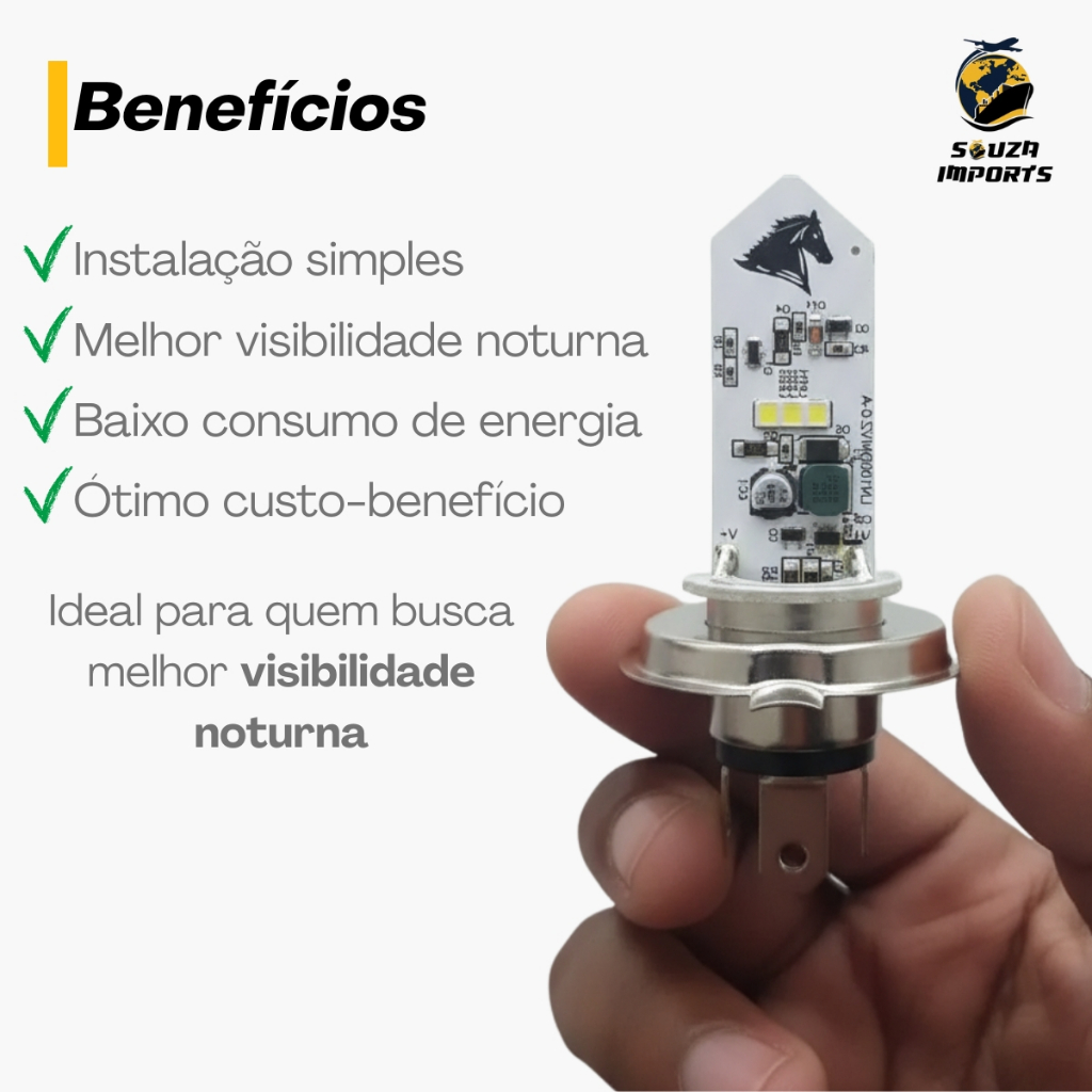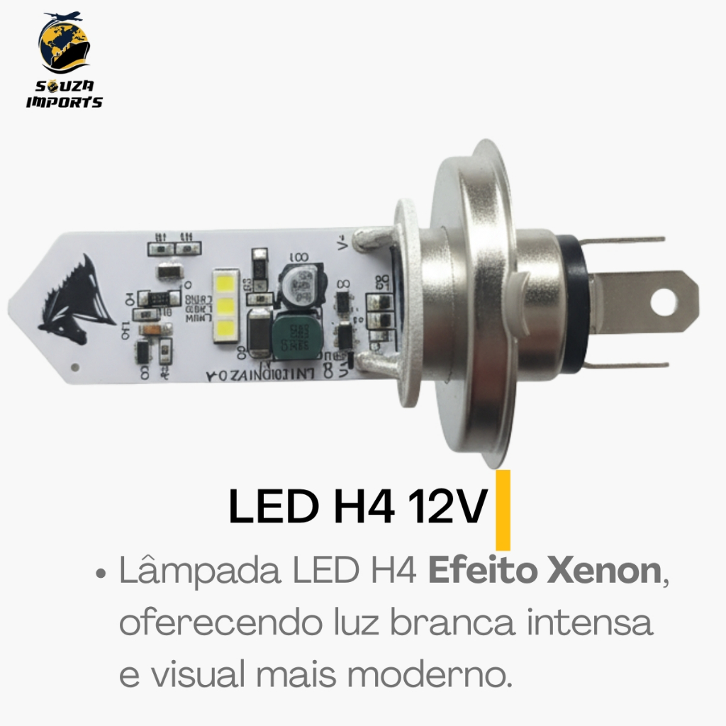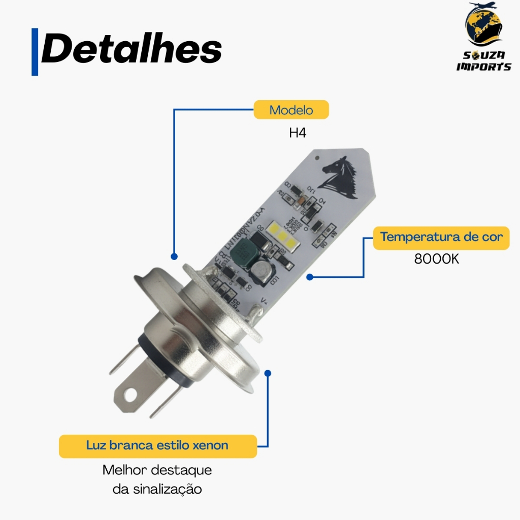 Lâmpada Super LED H4 Moto 8000K Efeito Xenon Forte 12V