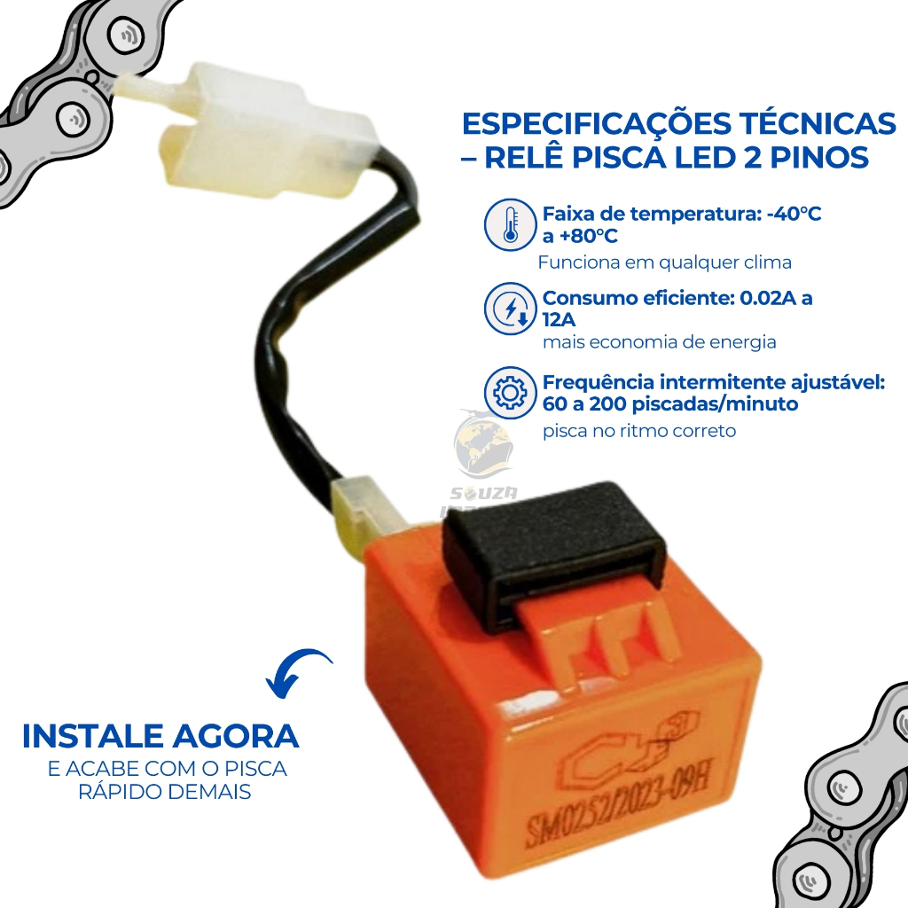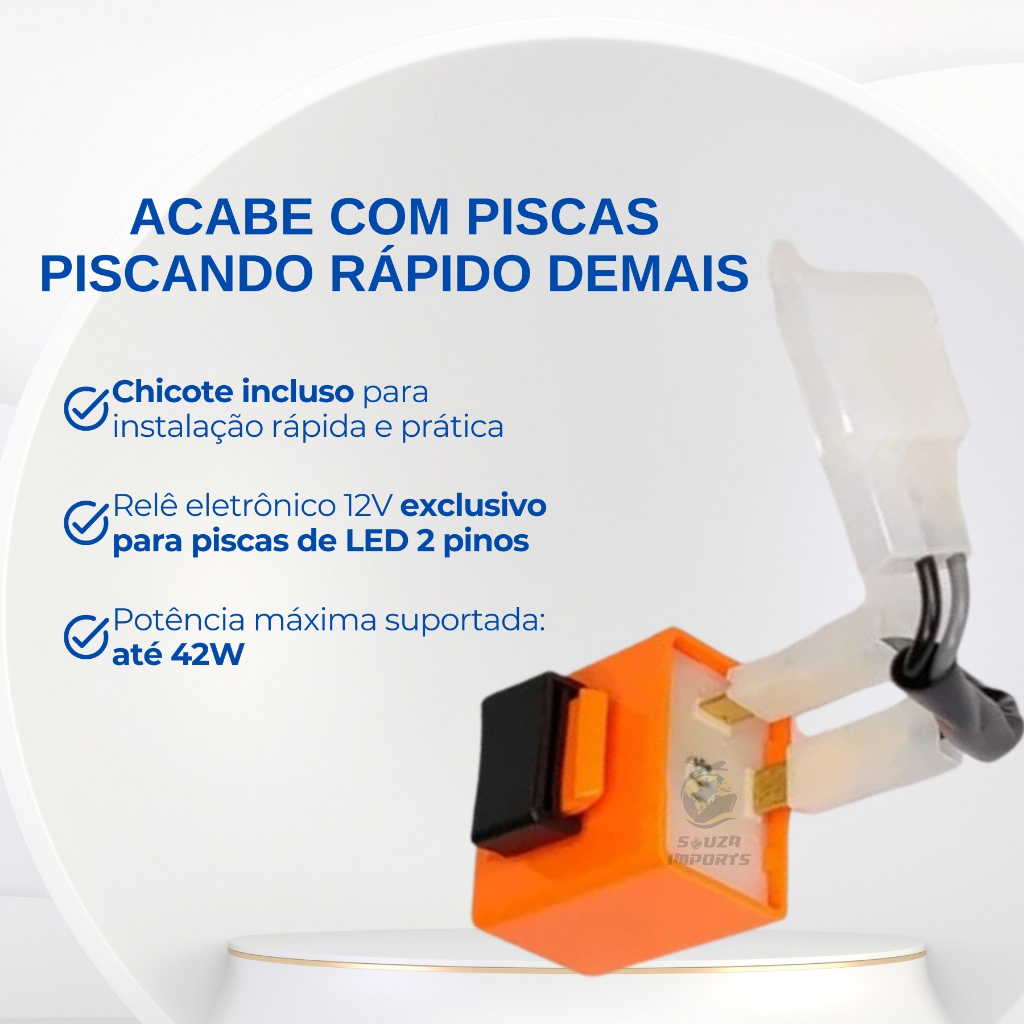 Rele Pisca Seta Led Moto 2 Pinos Universal Com Chicote