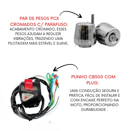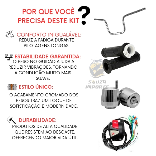 Guidão Cg 160 Cargo Moto Pesinho Pcx Cromado Manopla Punho