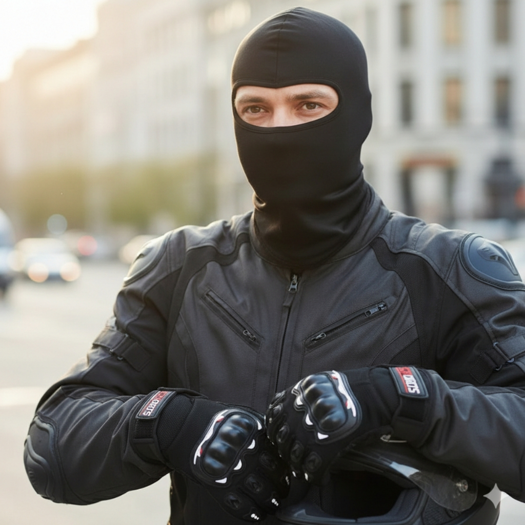 Kit Luva Motoqueiro Tática Touca Ninja Balaclava Térmica Frio