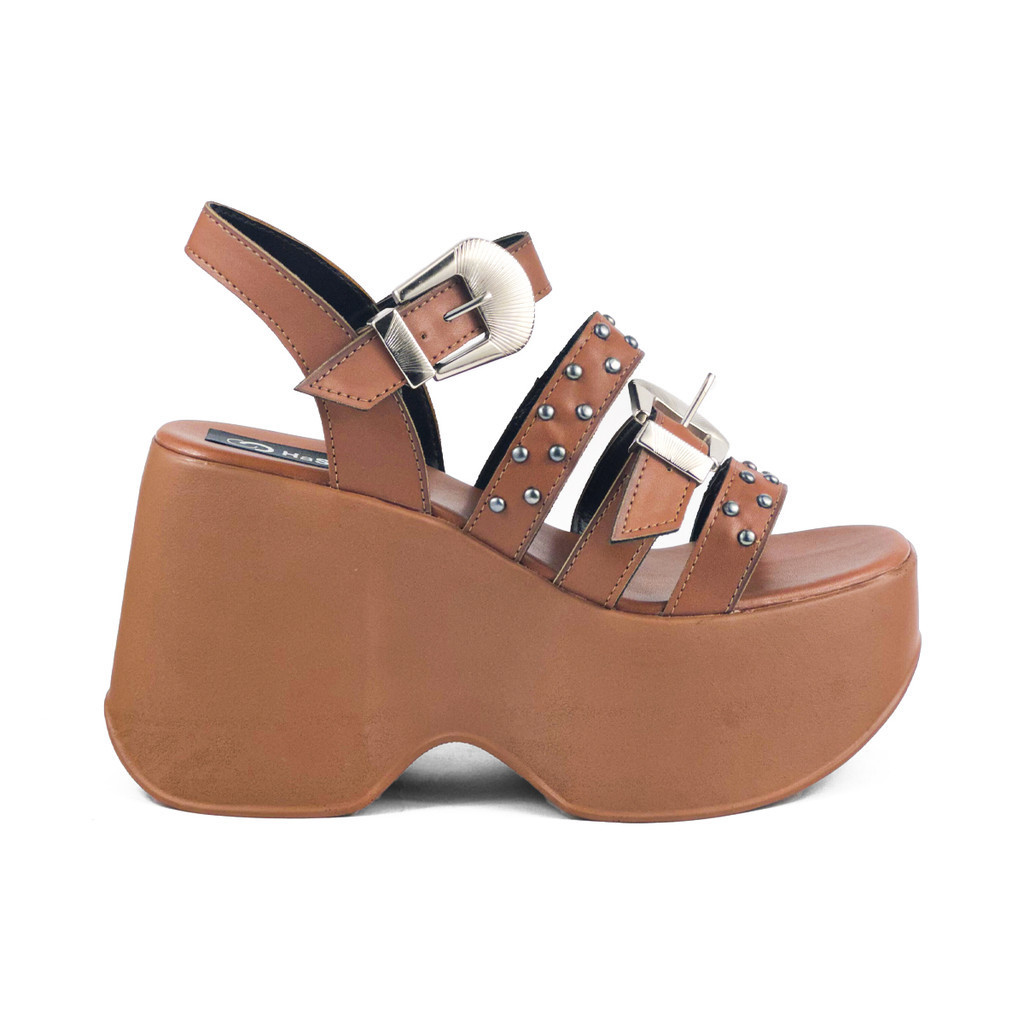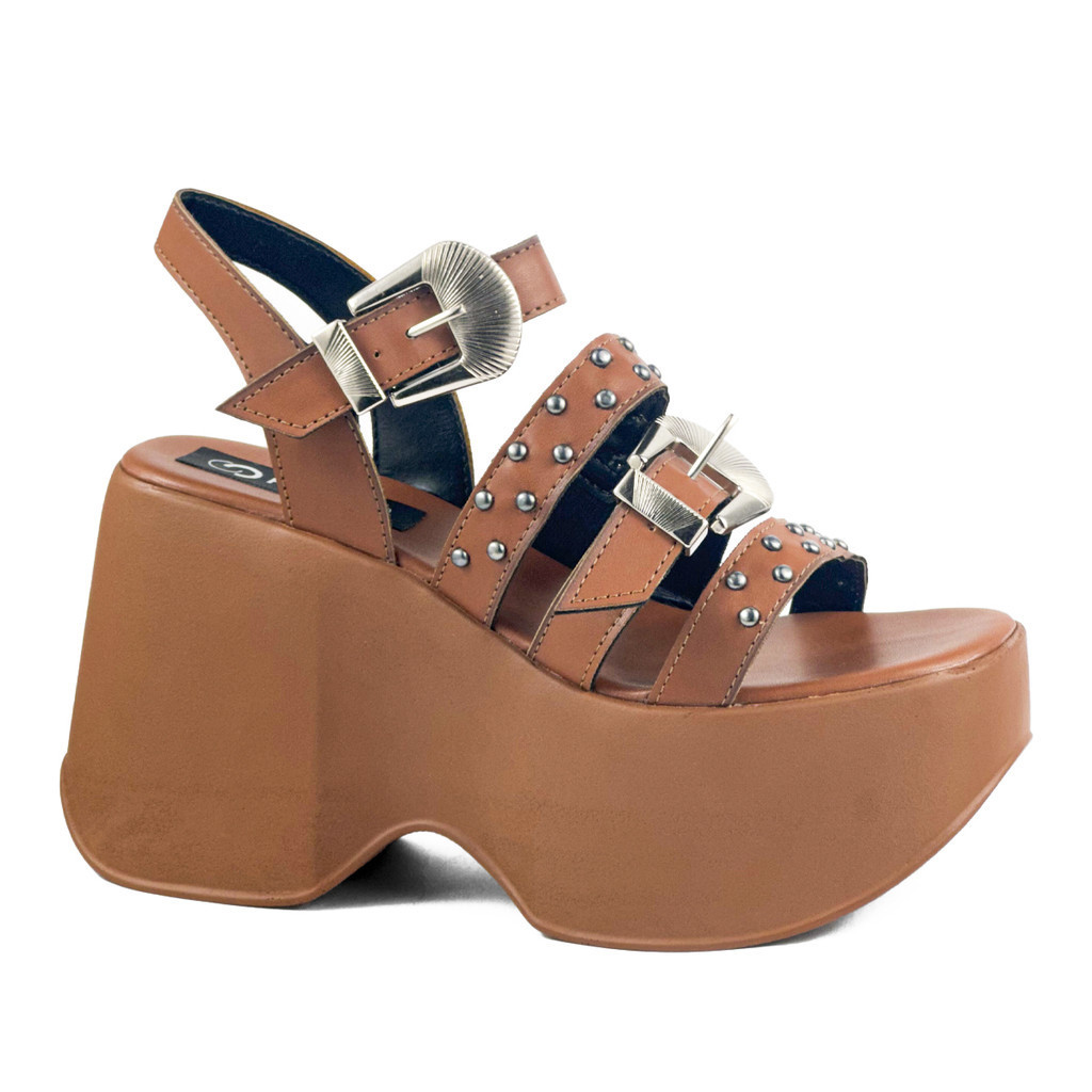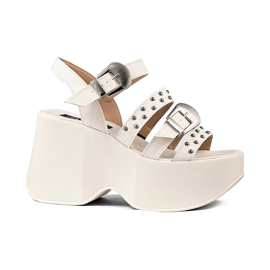 Sandália Tamanco Tiras Flat Plataforma Anabela Fivelas