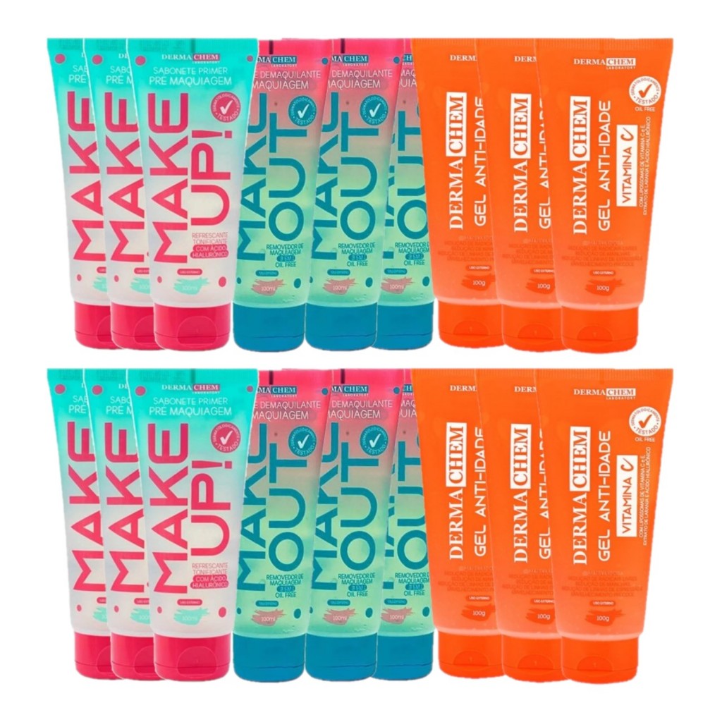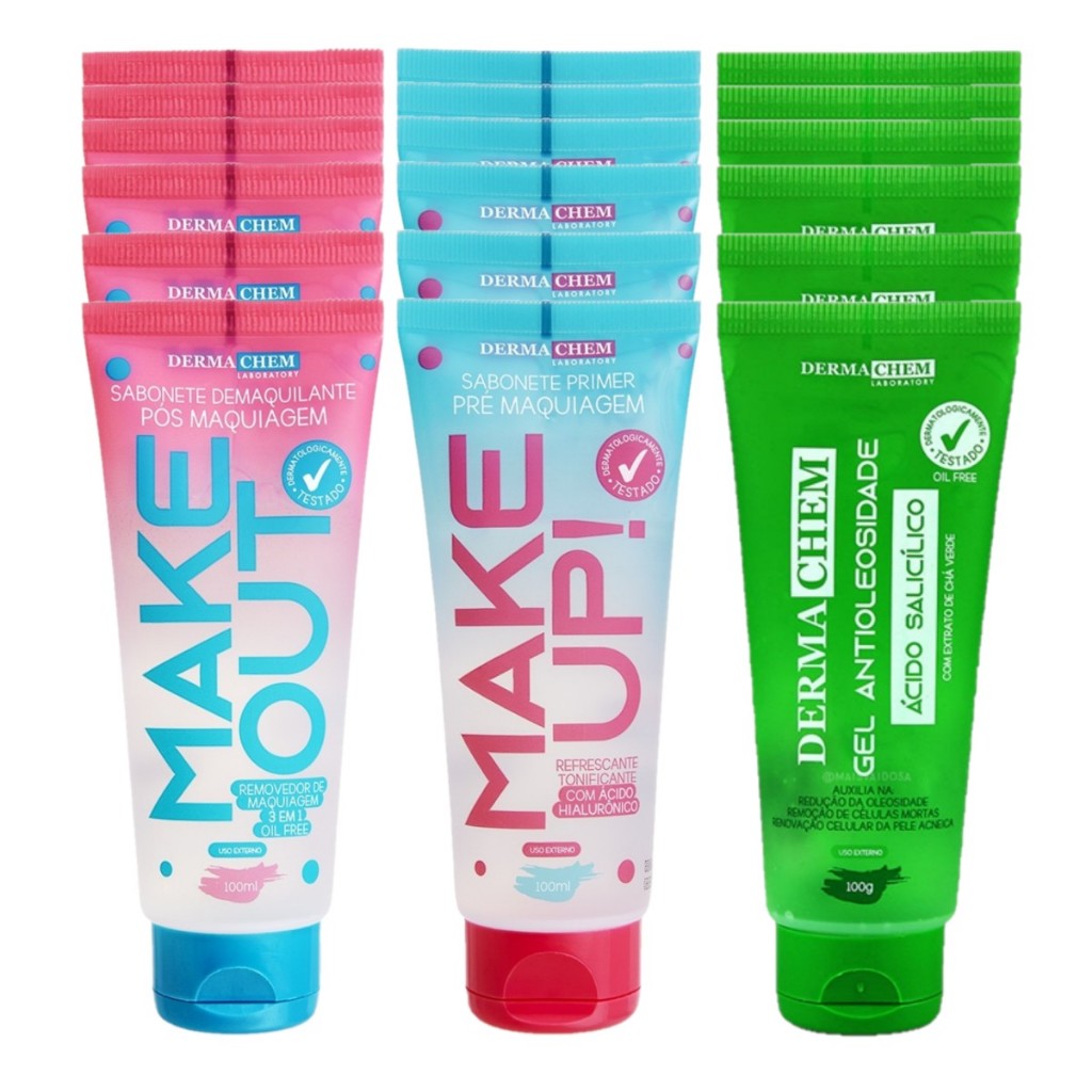 Combo Dermachem Atacado - Makeup + Makeout + Gel Anti-Oleosidade - 12 Unid ( 04 de Cada )