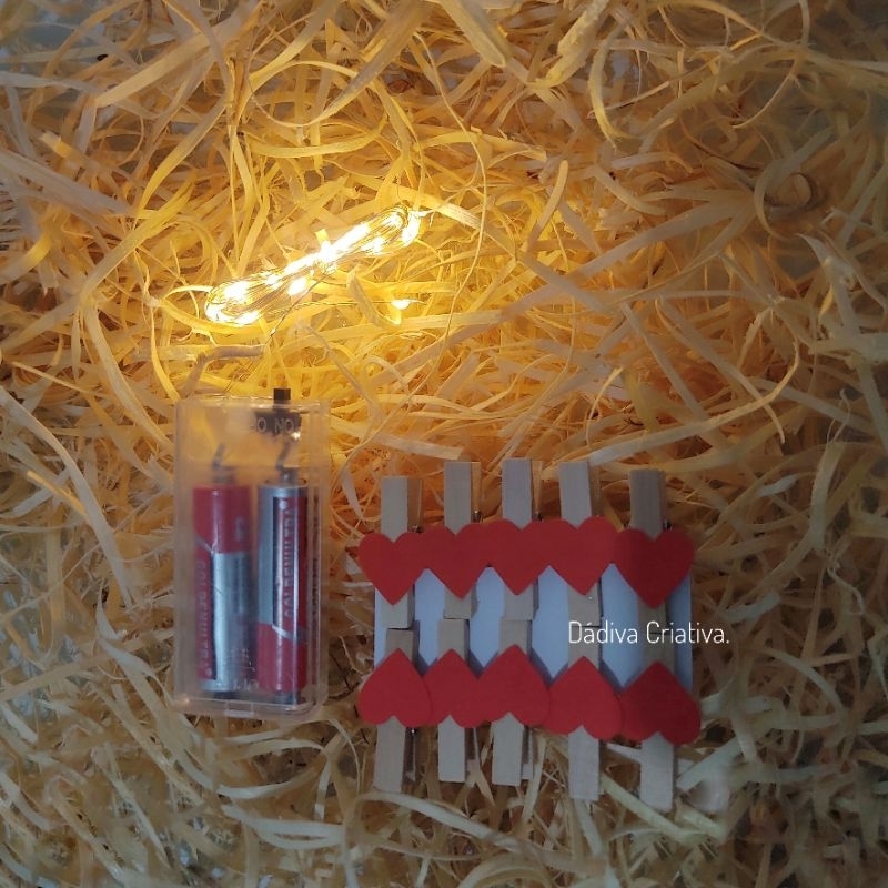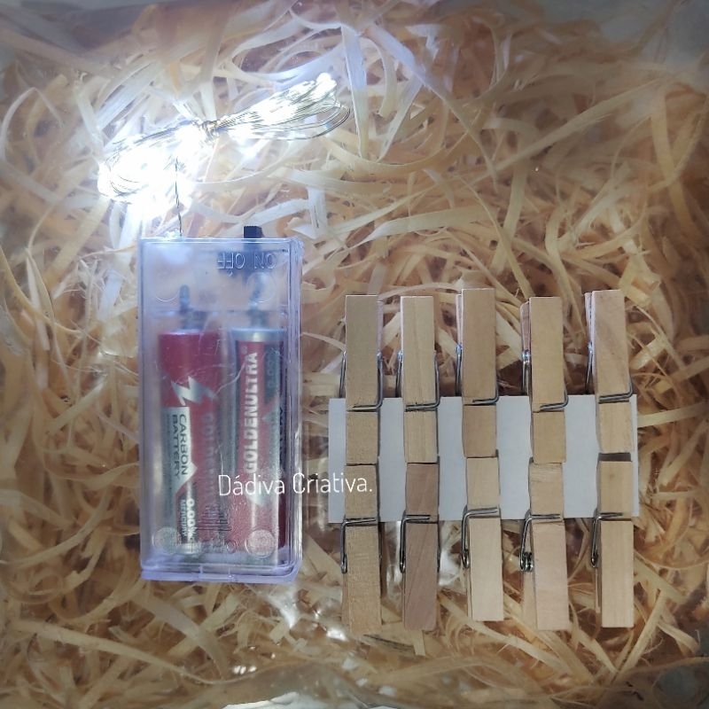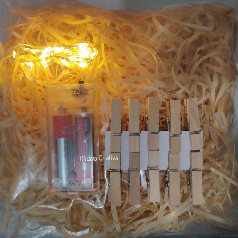 Kit Palha Decorativo com Fio de LED e 10 Prendedores – Varal Iluminado para Fotos e Ambientes