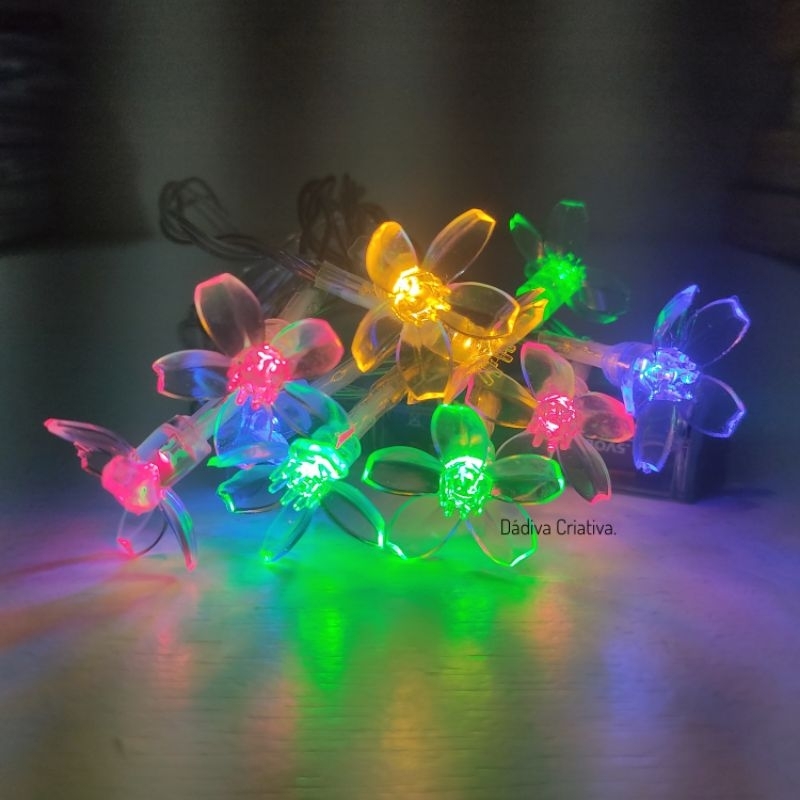 Cordão Varal Luminoso Flor Led | 2 metros 10 flores