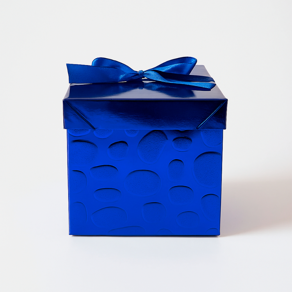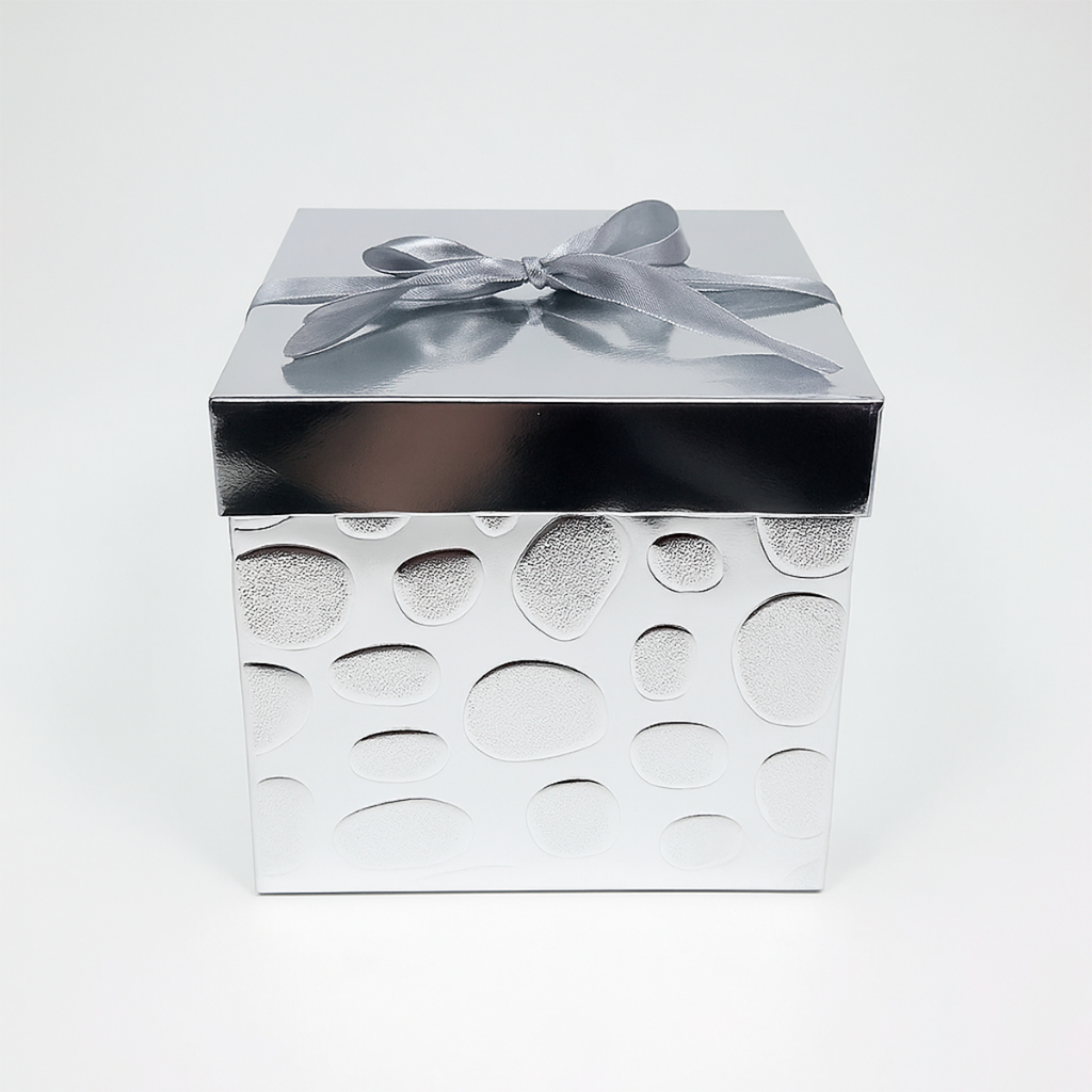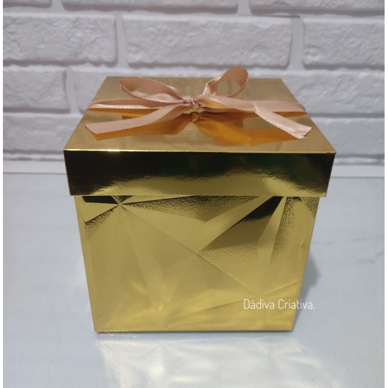 Caixa de presente metalizada com laço