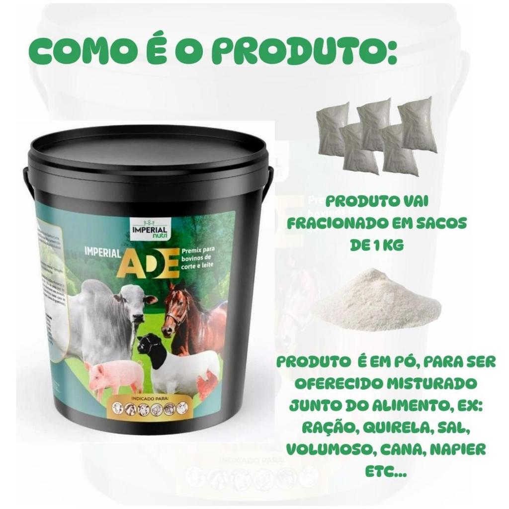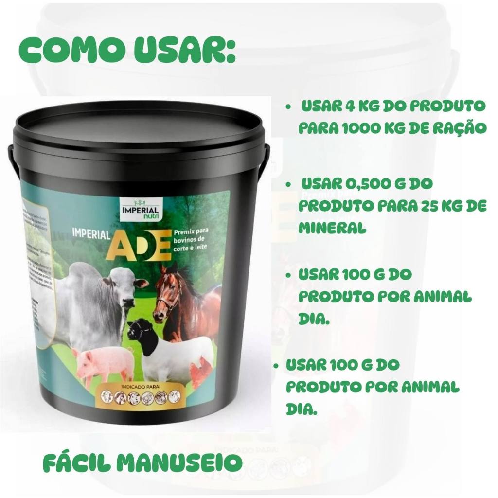 Vitamina Ade Premix Para Bovinos Caprinos Suínos Aves e Equinos - Max A.D.E 1kg + BALDE