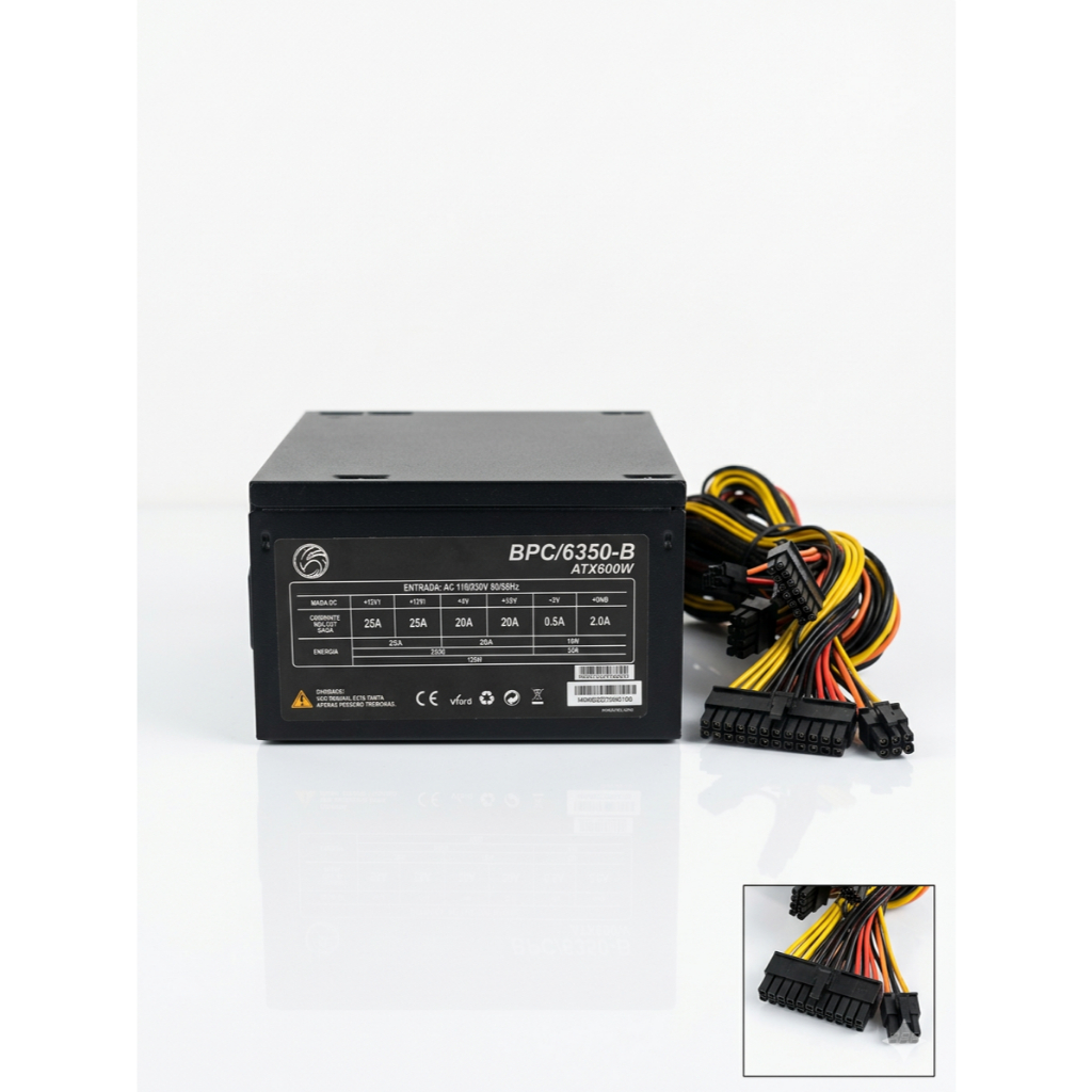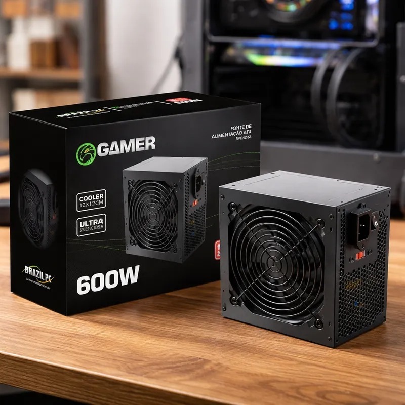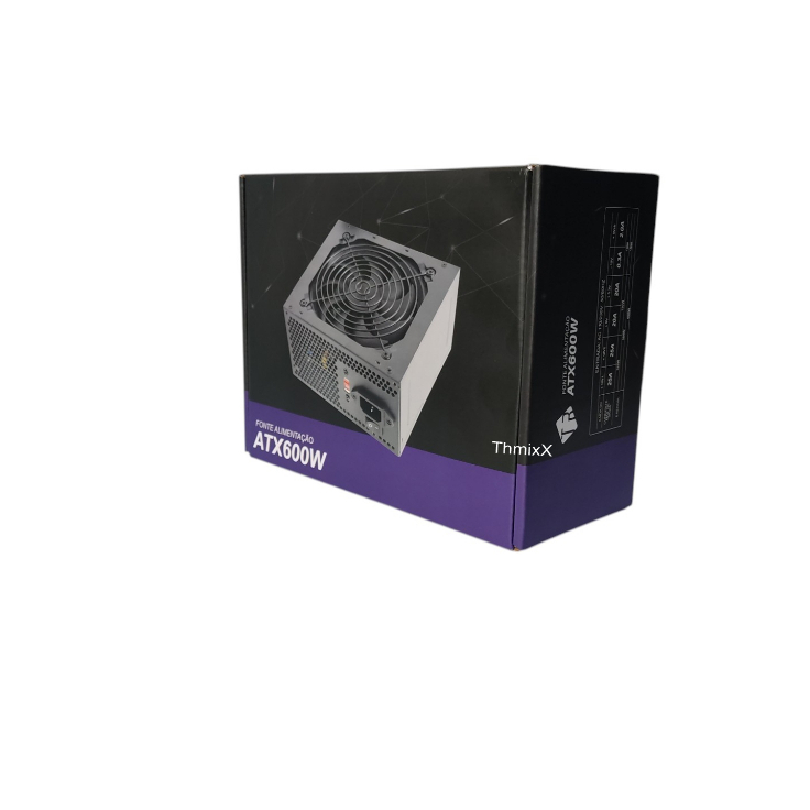 Fonte de Alimentação ATX 600W 24 Pinos Silenciosa Bivolt 115V/230V PC Gamer Preta