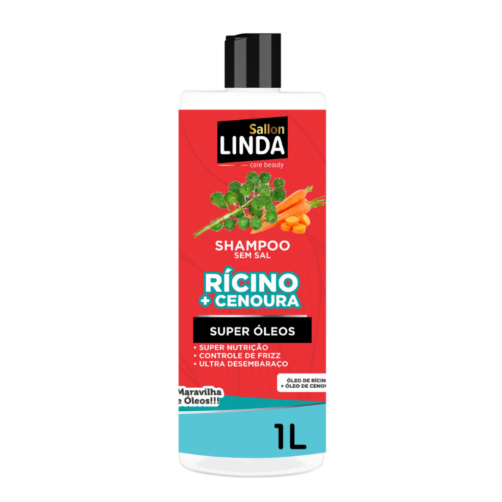 Kit Rícino e Cenoura Shampoo e Condicionador 1L + Máscara 1Kg Nutrição e Controle do Frizz