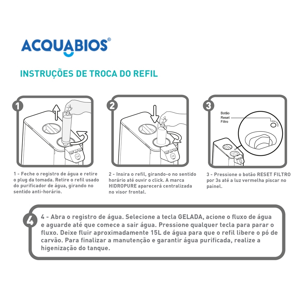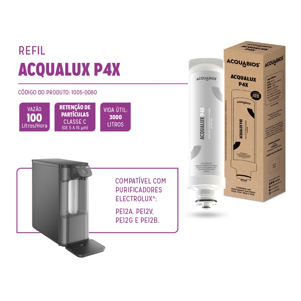 Refil Acquabios Compatível Filtro Purificador Electrolux PE12A PE12B PE12G PE12V