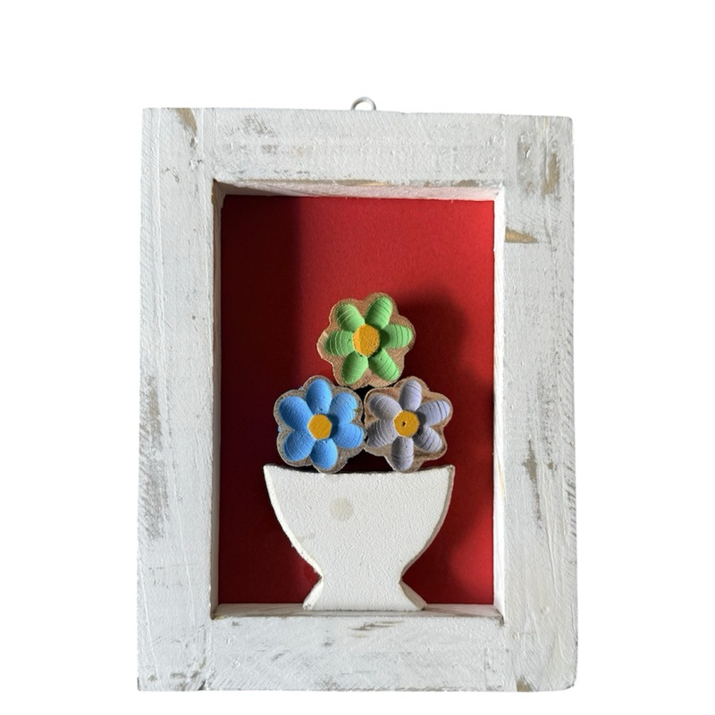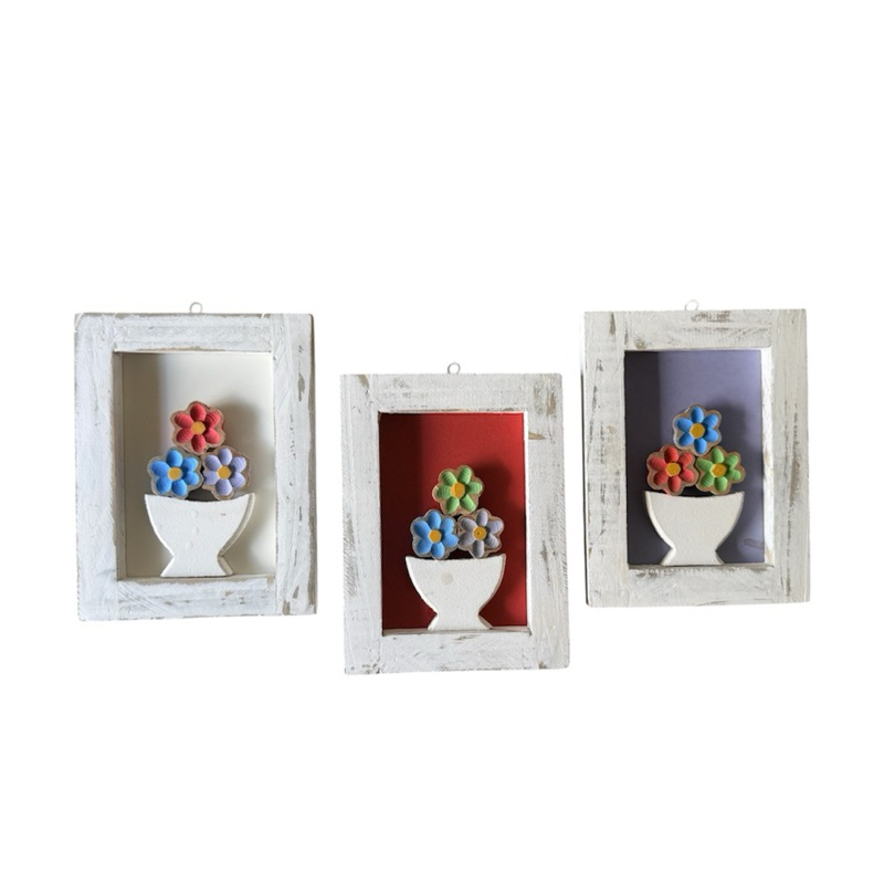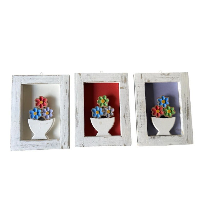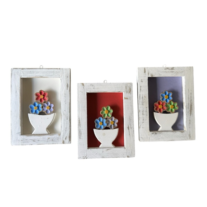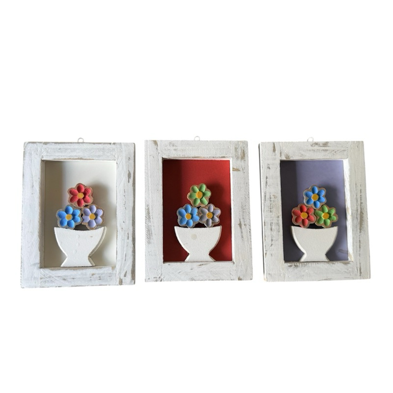 Quadro de Madeira com Flores Entalhadas e Pintadas á Mão, artesanal, decorativo, moldura, envio imediato
