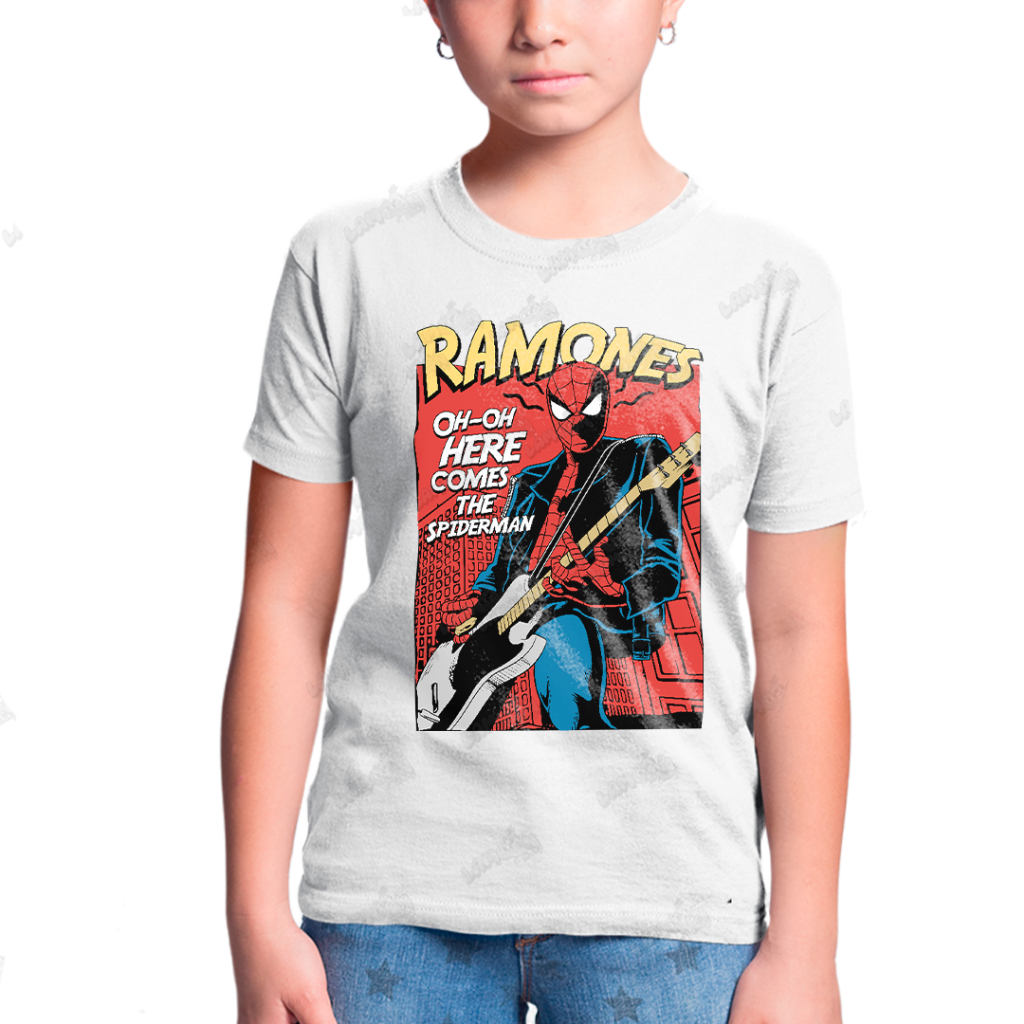 Camiseta Infantil Algodão T shirt Ramones Homem Aranha Rock