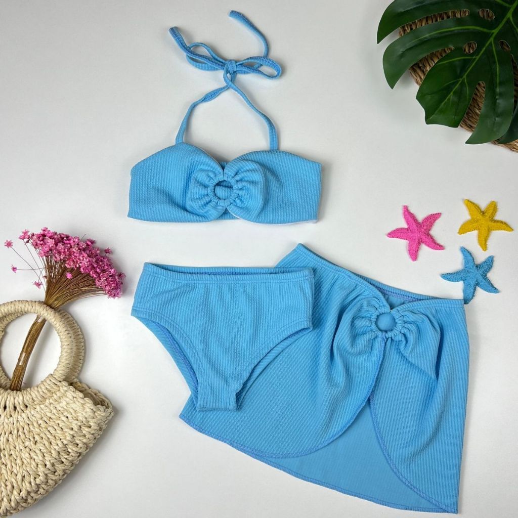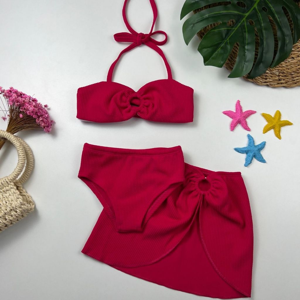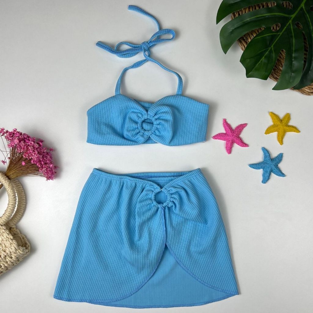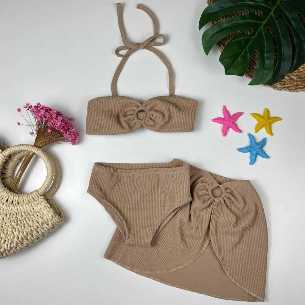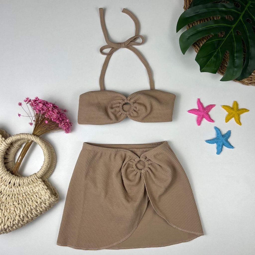 Conjunto Biquíni 3 Peças Com Saída Saia Argola Lançamento Verão 2026 Look Praia Mini Diva