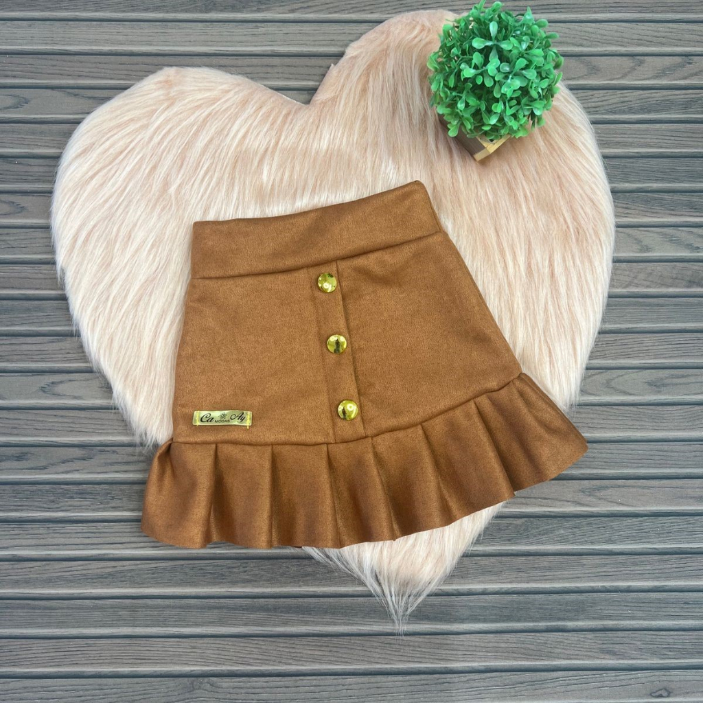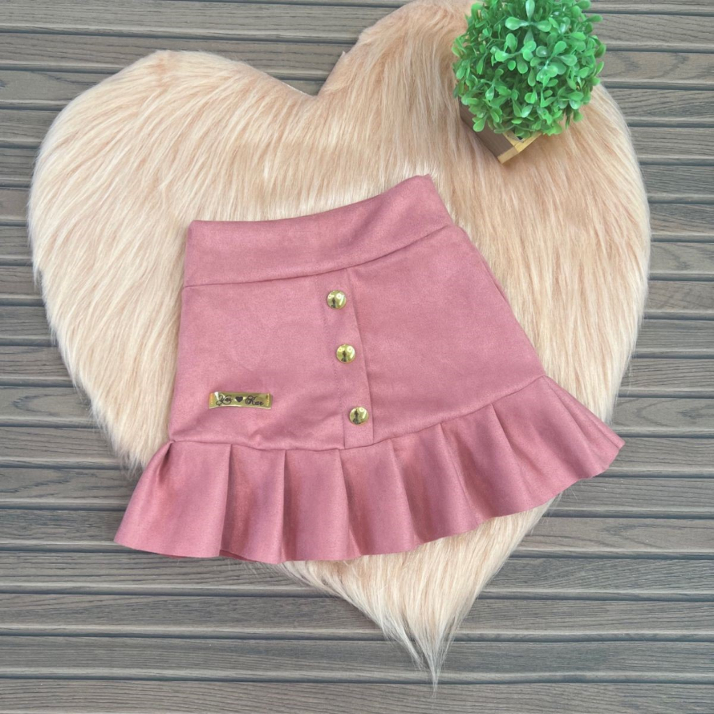 Saia Infantil Blogueirinha Babado Suede Mini Diva Novidade